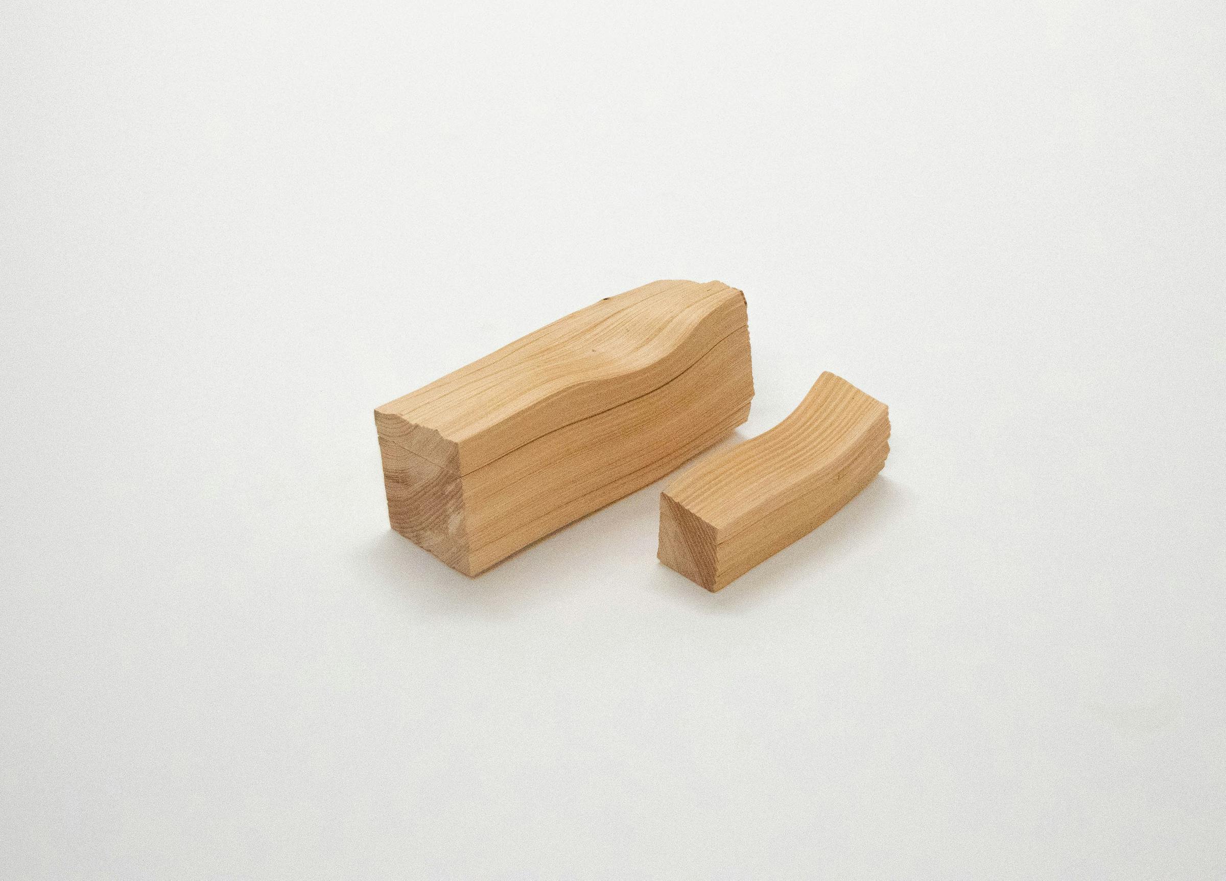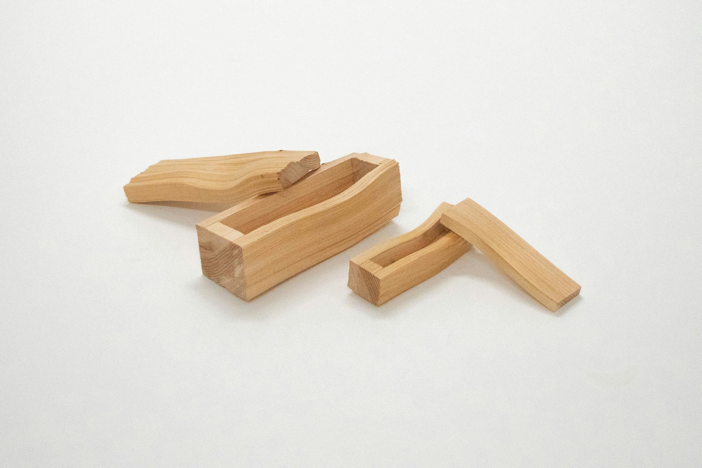 木が本来持つ木目を壊さずにつくるヒノキの箱。より自然的・有機的な造形を実現しました。箱としての用途はもちろん、インテリアとして置いていても違和感がありません。