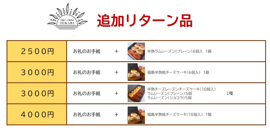 ※上記すべてのリターン金額は送料(クール便)、資材、手数料込みの金額設定となっております。