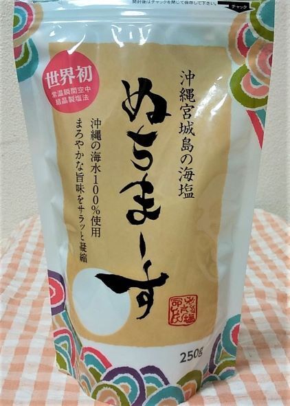 地元のうるま市宮城島の海水からとれた塩、ぬちまーす(命の塩という意味)。