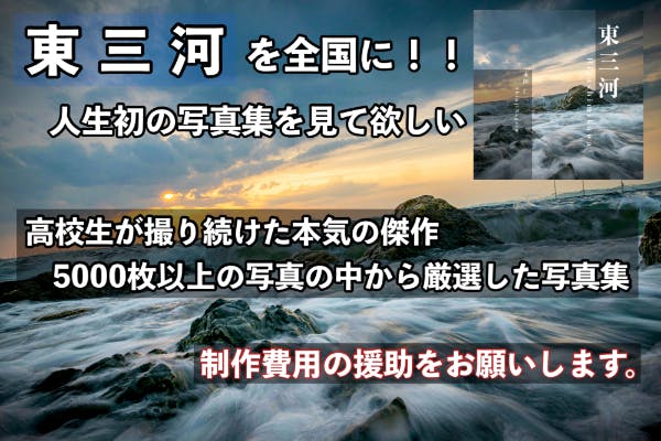 コロナでなかなか外出もできずなにか自宅でできる面白いことはないかふと考え、東三河をテーマにした写真集作ってみようと思いSNSで写真集を作成する旨を告知すると多くの方から予想以上の反響をいただき、それならせっかくだし全国の方へも東三河をそして自分の作品を届けよう。そう思い立ち、計画を練っていましたが高校生ひとりの力では資金的に厳しいものがあったため本プロジェクトを行うことを決めました。