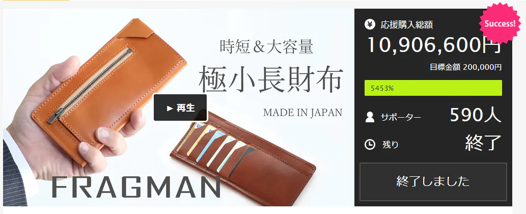 2020年8月 国内クラウドファンディングにて初代FRAGMANは目標金額の5453%、金額にして10,906,600円の支援を頂きました!!