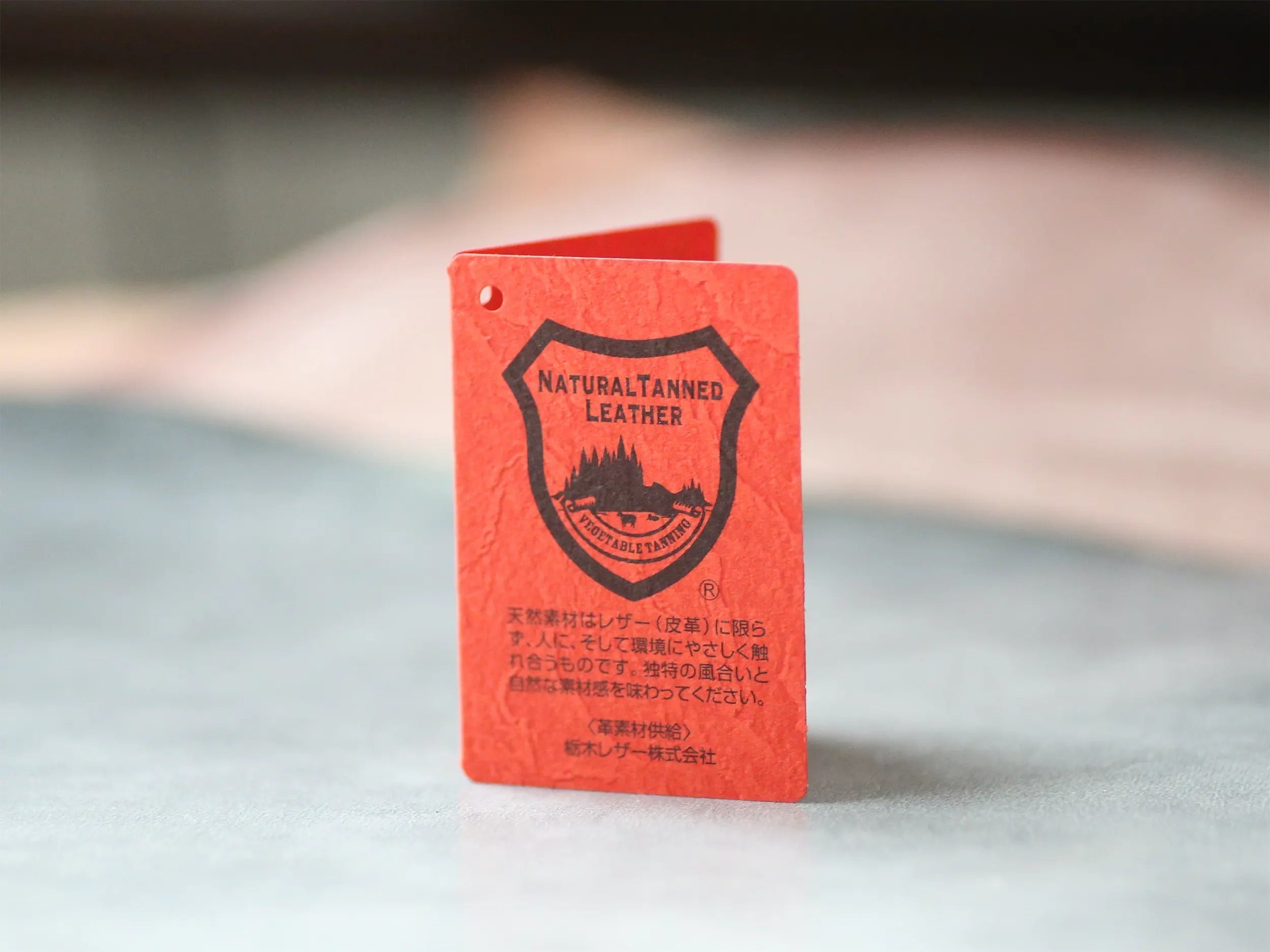 この「赤タグ」は栃木レザーを使用した製品の証明となります。