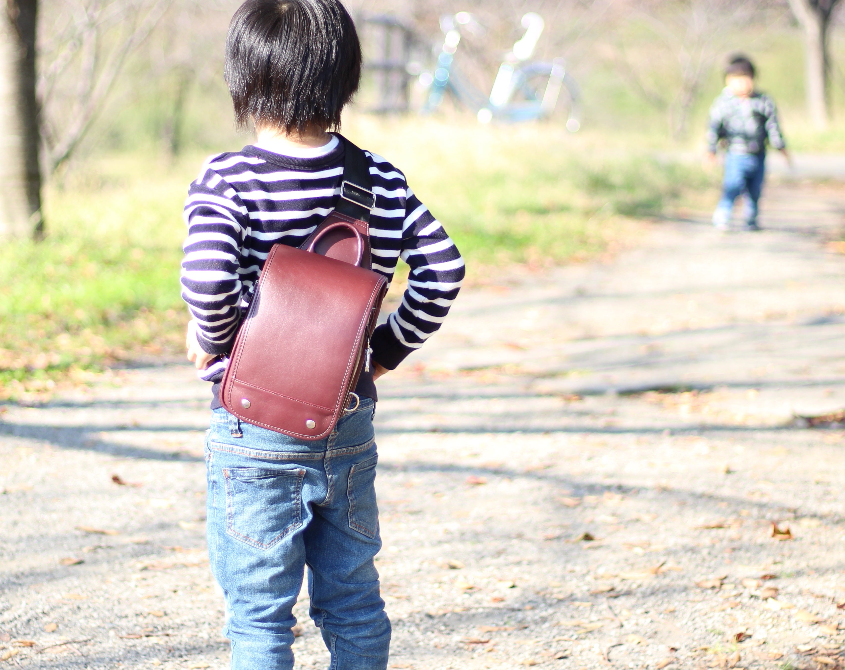 子供が「大人用ランドセル型ボディバッグ」を背負っている姿はとても可愛いですよ。笑