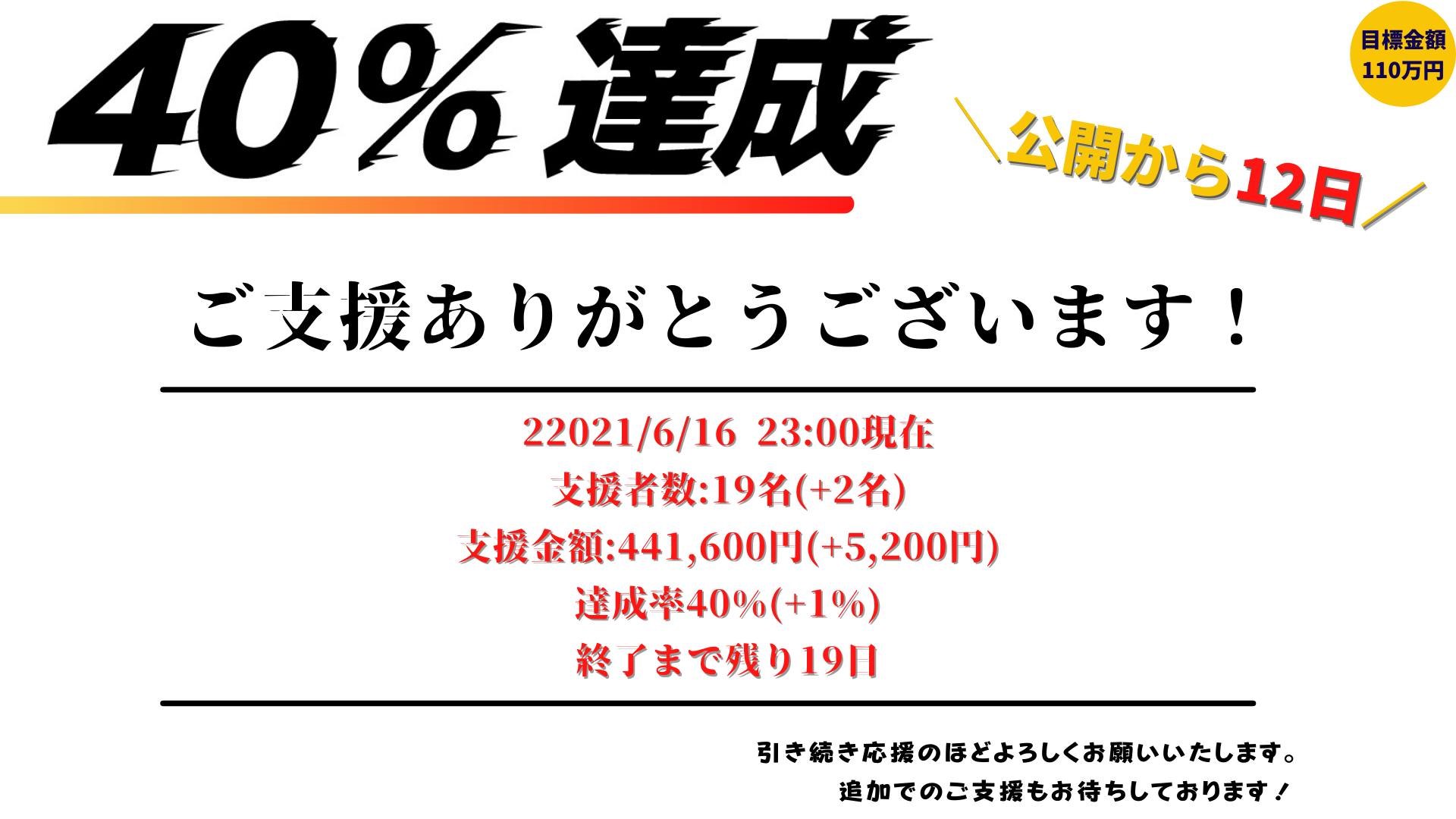 残り60%の達成率、金額で言うと 66万円 のご支援をいただく必要がありますが、引き続きめげずに前へ前へ進んでいきます!