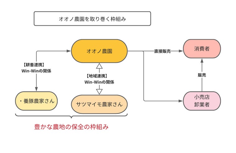 栽培にあたっては、有機肥料を使うこととし、養豚農家と連携して堆肥を作るなど、土作りに努めていたので、「オオノ農園に貸すと、良い畑にして返してくれる」と評判になり、近隣農家が進んで貸してくれるようになりました。オオノ農園とさつまいも農家とがウィン・ウィンの関係になったことで、円滑な生産規模の拡大につながっています。