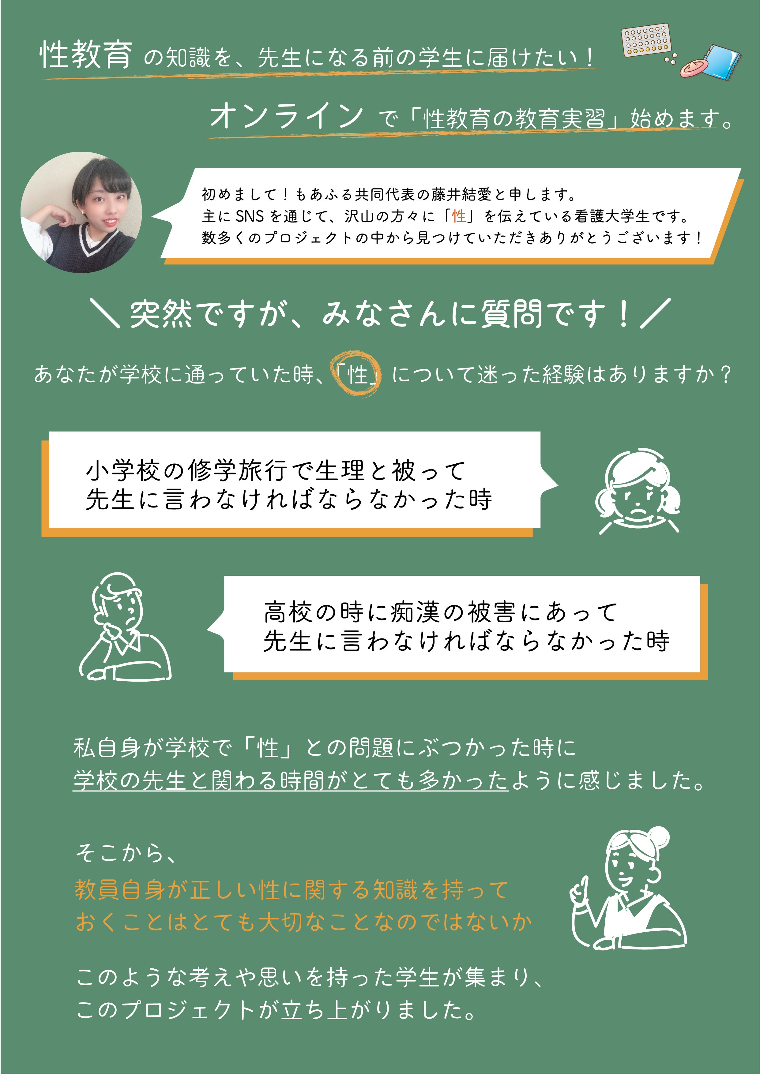 そこで私達が考えたのが、オンラインでの教育実習で『性教育』をこれからの教育を担う学生たちに伝えていくことです。