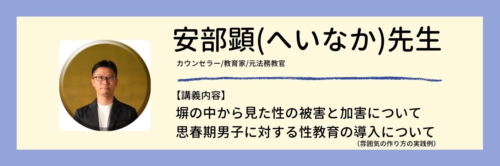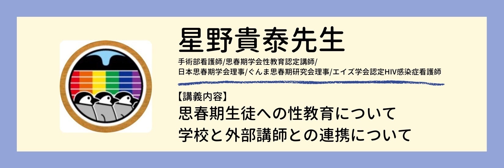 包括的な性教育に焦点を当て、多種多様な専門家がそれぞれの専門性を生かした特別講義を行います。