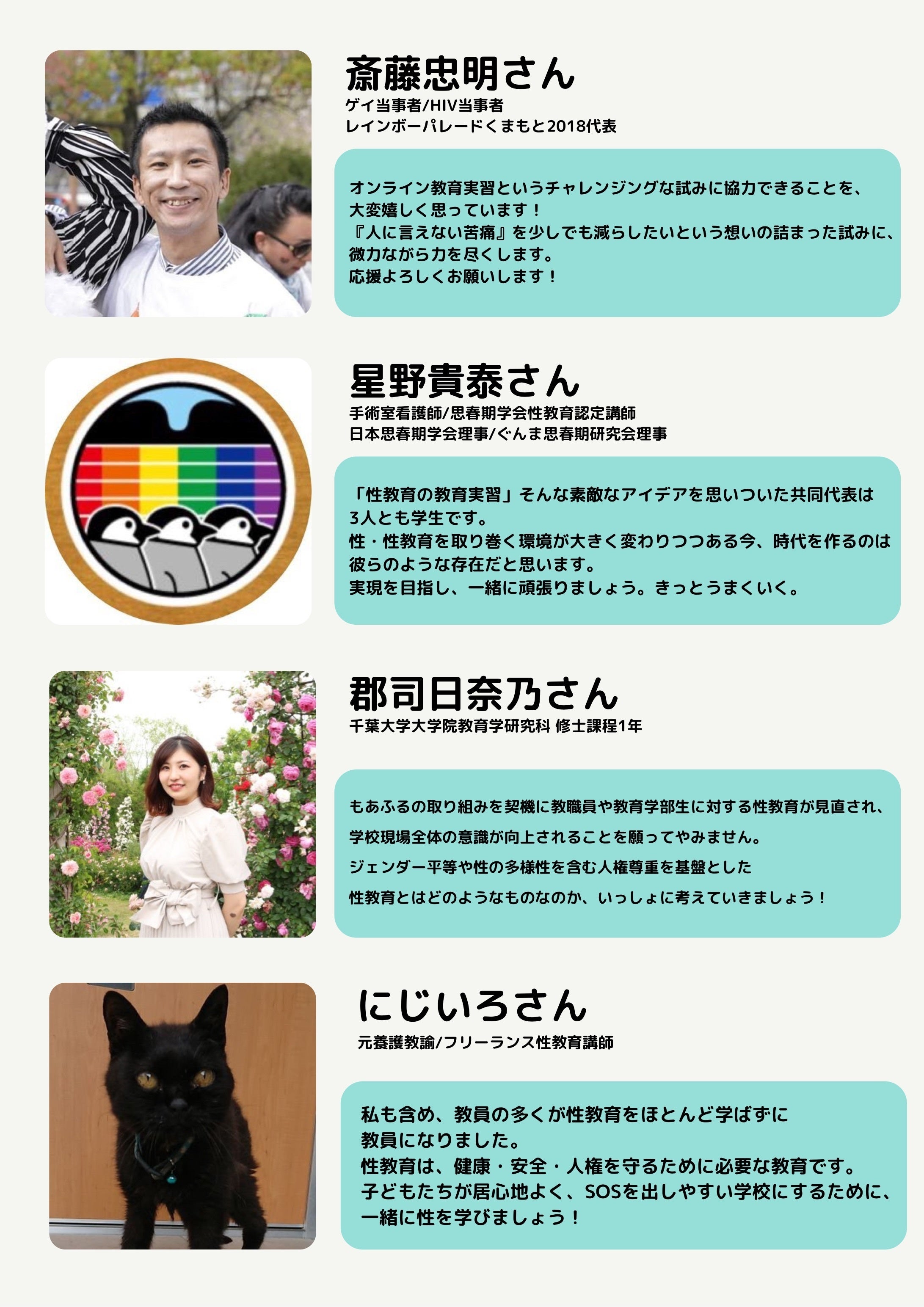 このページを見に来てくださった方、クラファンを支援して下さる方、参加して下さる方はもちろん、この企画に賛同し一緒になってプログラムを作ってくださった方々がいてこそできる【もあふるオンライン教育実習】です。すべての方々へ私から感謝の言葉を送ります。