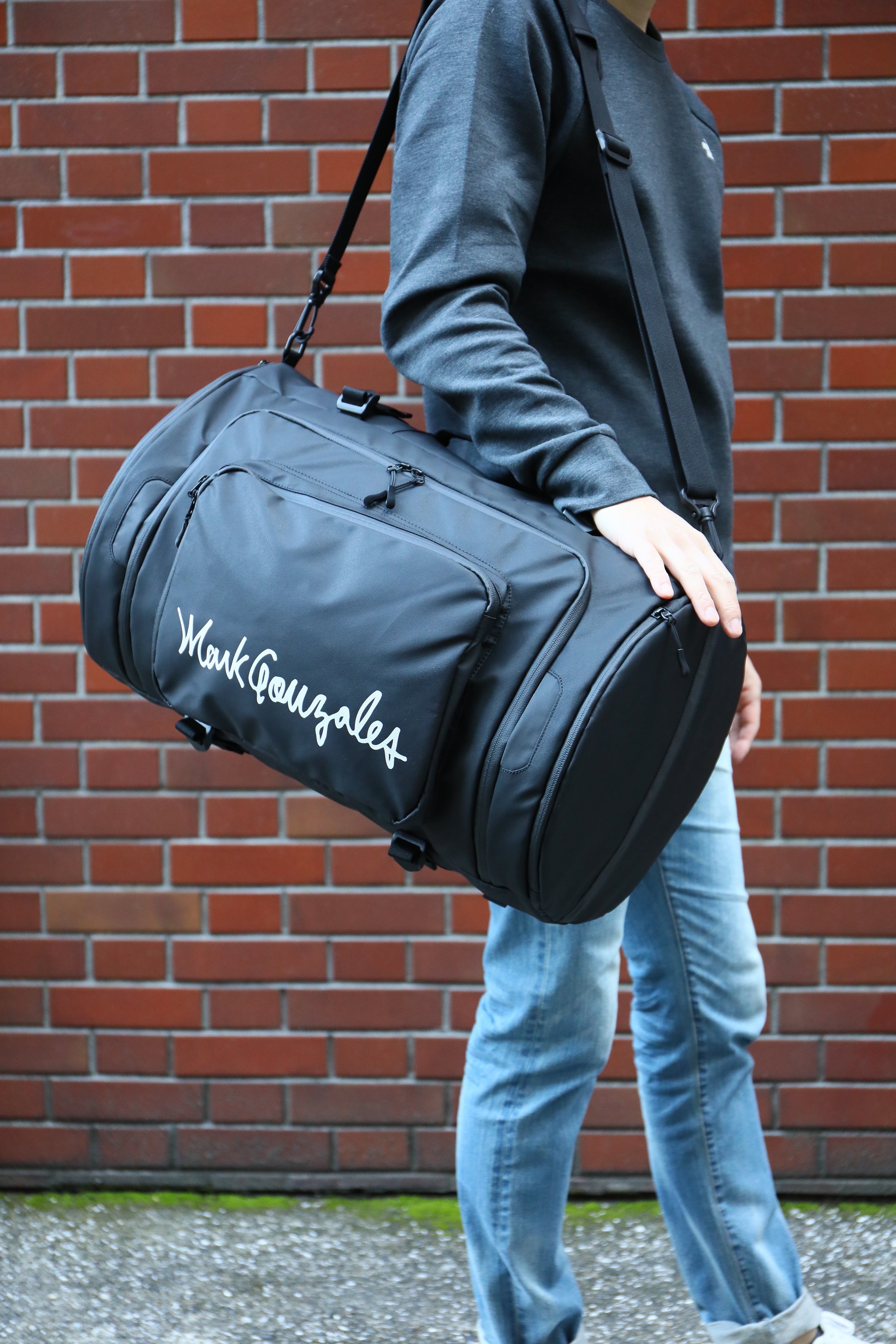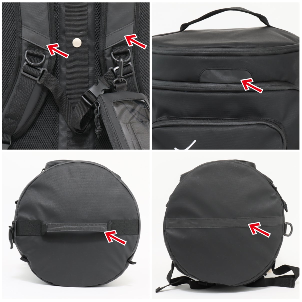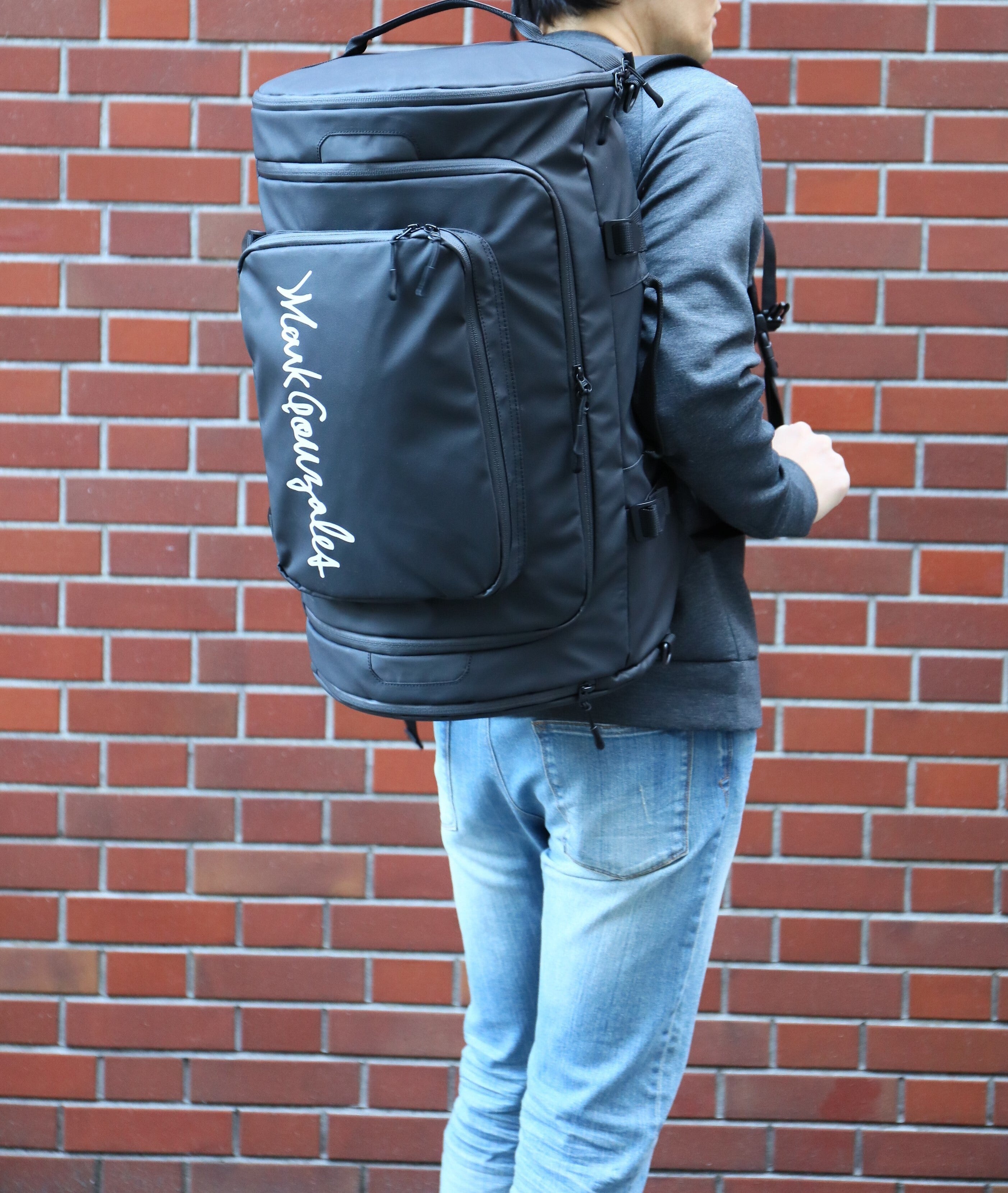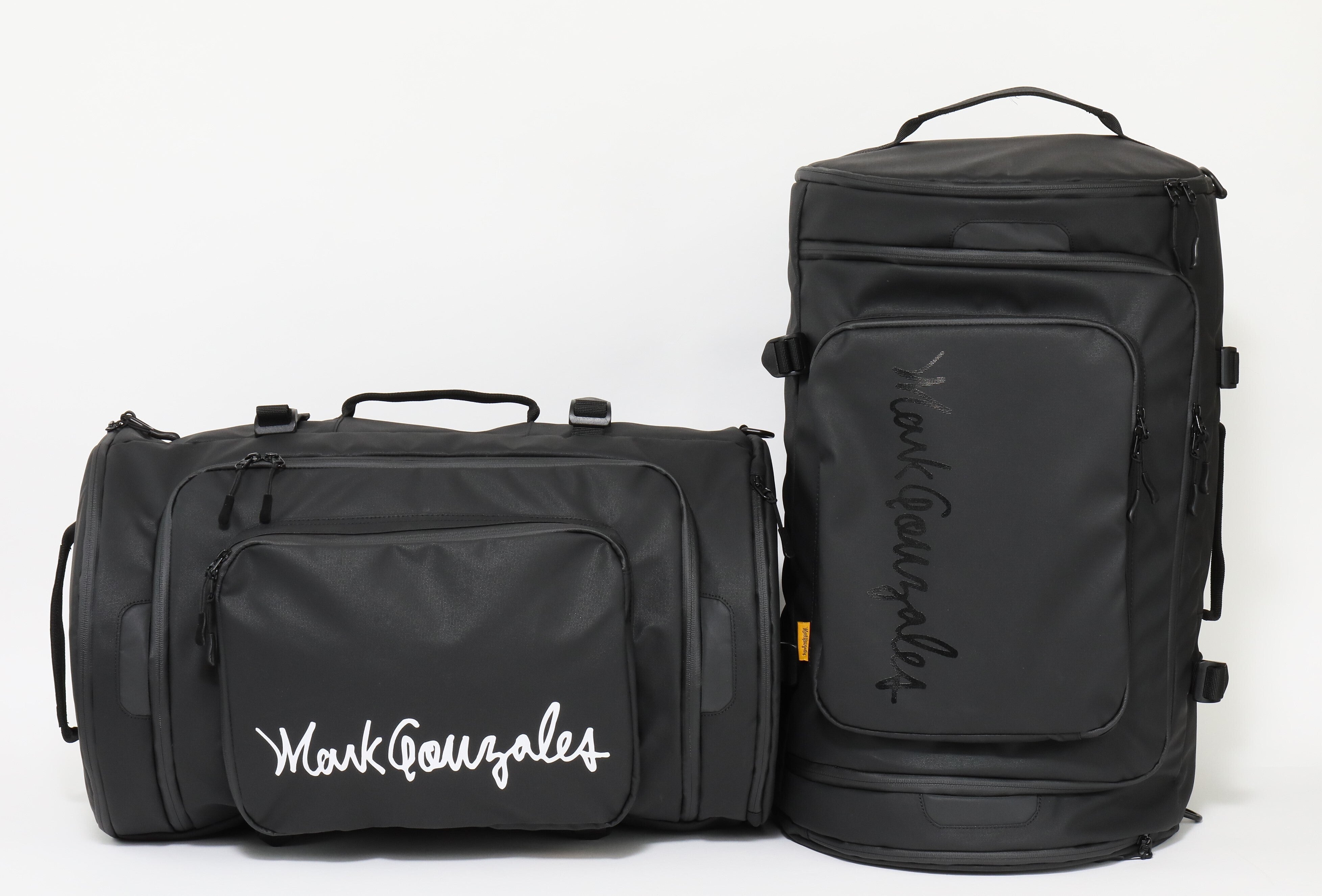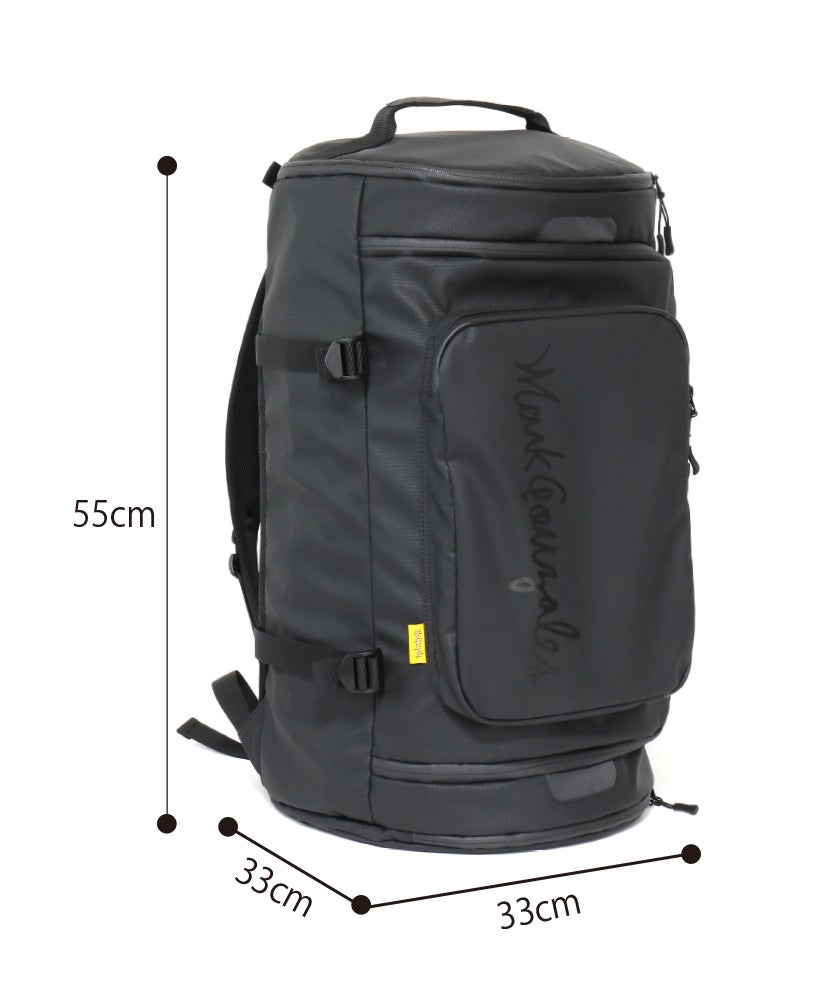 ブラックxホワイト*、ブラックxブラック* の2色展開(*ロゴ文字)。ベーシックでシンプルなデザインなので、幅広い年代、ユニセックスでも使えるデザインです。スポーツやアウトドアが趣味の方、お仕事で荷物が多い方、学生さんの部活用・修学旅行用にもお勧めです。