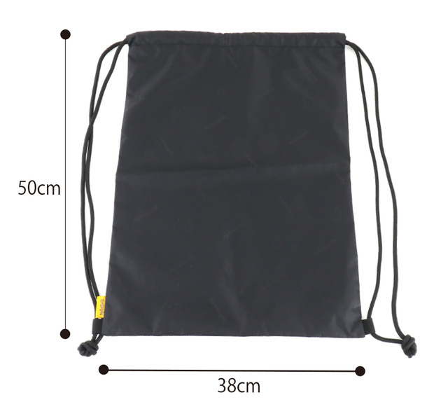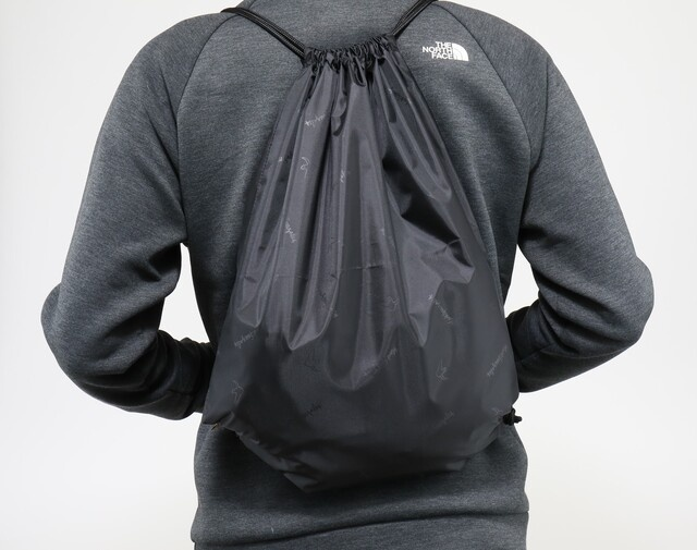 ロゴ・キャラクターデザインがエンボス加工された、インナーバッグもセットになります。色はブラック。着替えやシューズ入れとして、またキャンプや旅行先でナップサックとしてもお使いいただけます。