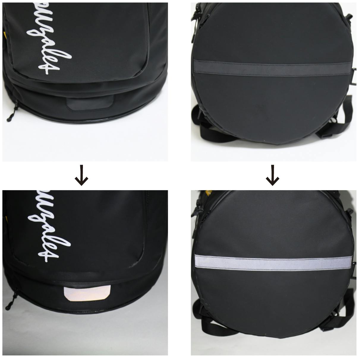夜道の使用に考慮した、リフレクターを搭載しています(リュックベルト左右、外部メインルームファスナー上下、バッグ上手持ち部、底部 ※リュック使用時)。バッグの4面に付いており、3WAYどの使用時でも前後からの視認性を高めます。