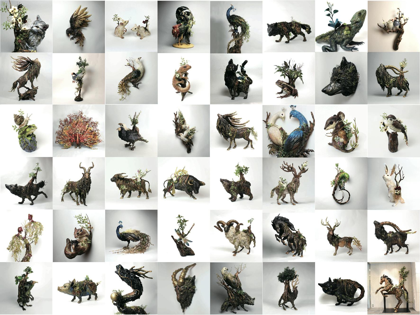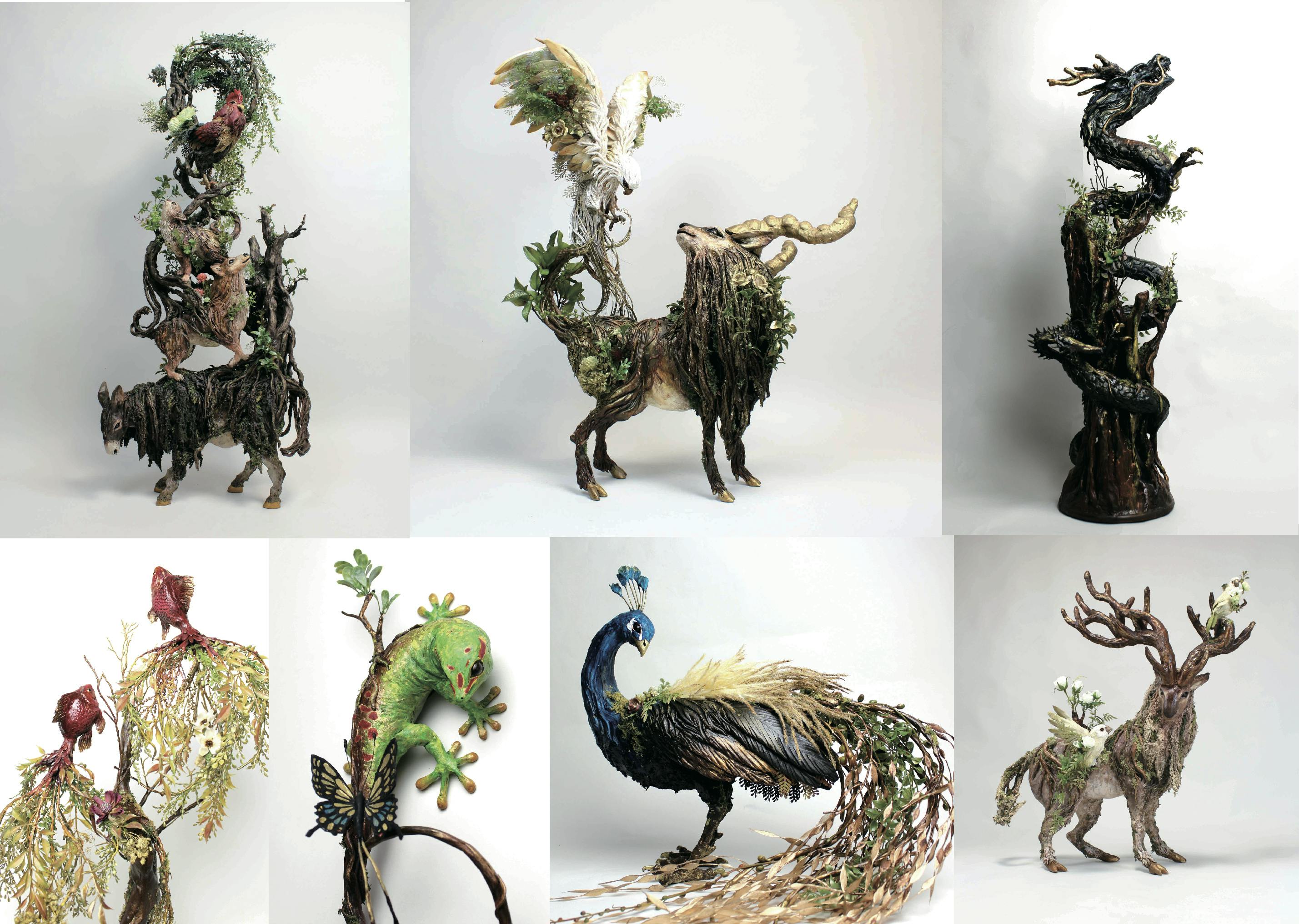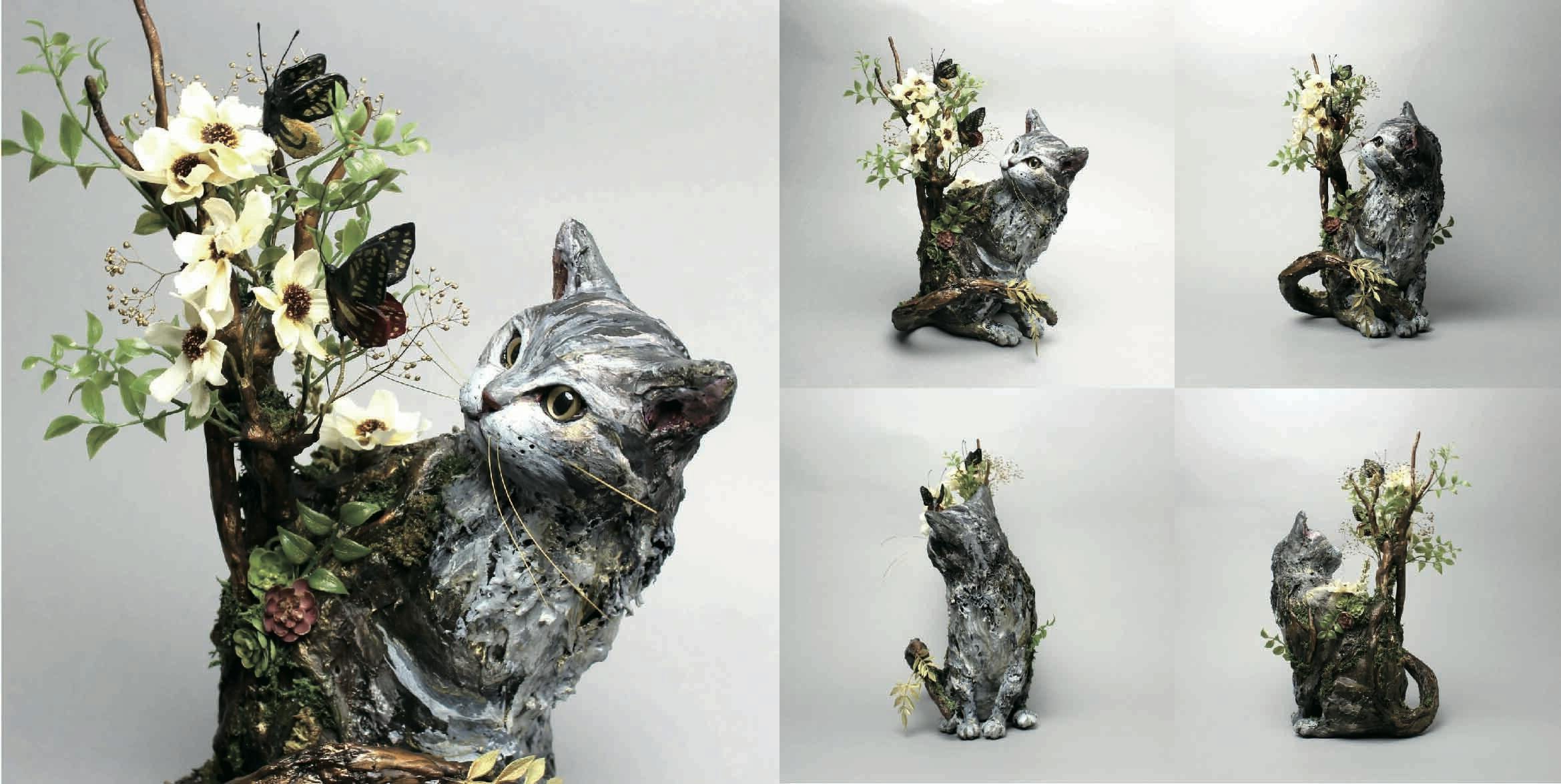 表現したい形と素材の相性を見直し、粘土に限らず様々な素材を組み合わせるミクストメディアへ移行。
