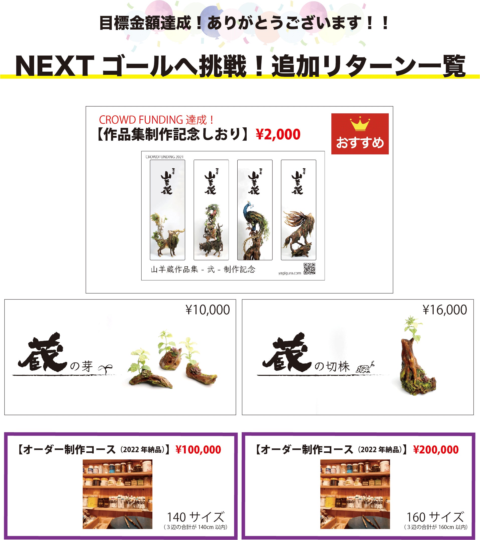 展示開催時期は情勢次第になりますので「山羊蔵展2022」とここで明言できないのが非常にもどかしいですが、ネクストゴール達成の暁には、大きな作品から小さな作品まで、様々な山羊蔵作品を揃えた空間に、皆さまをお迎えさせていただきます。