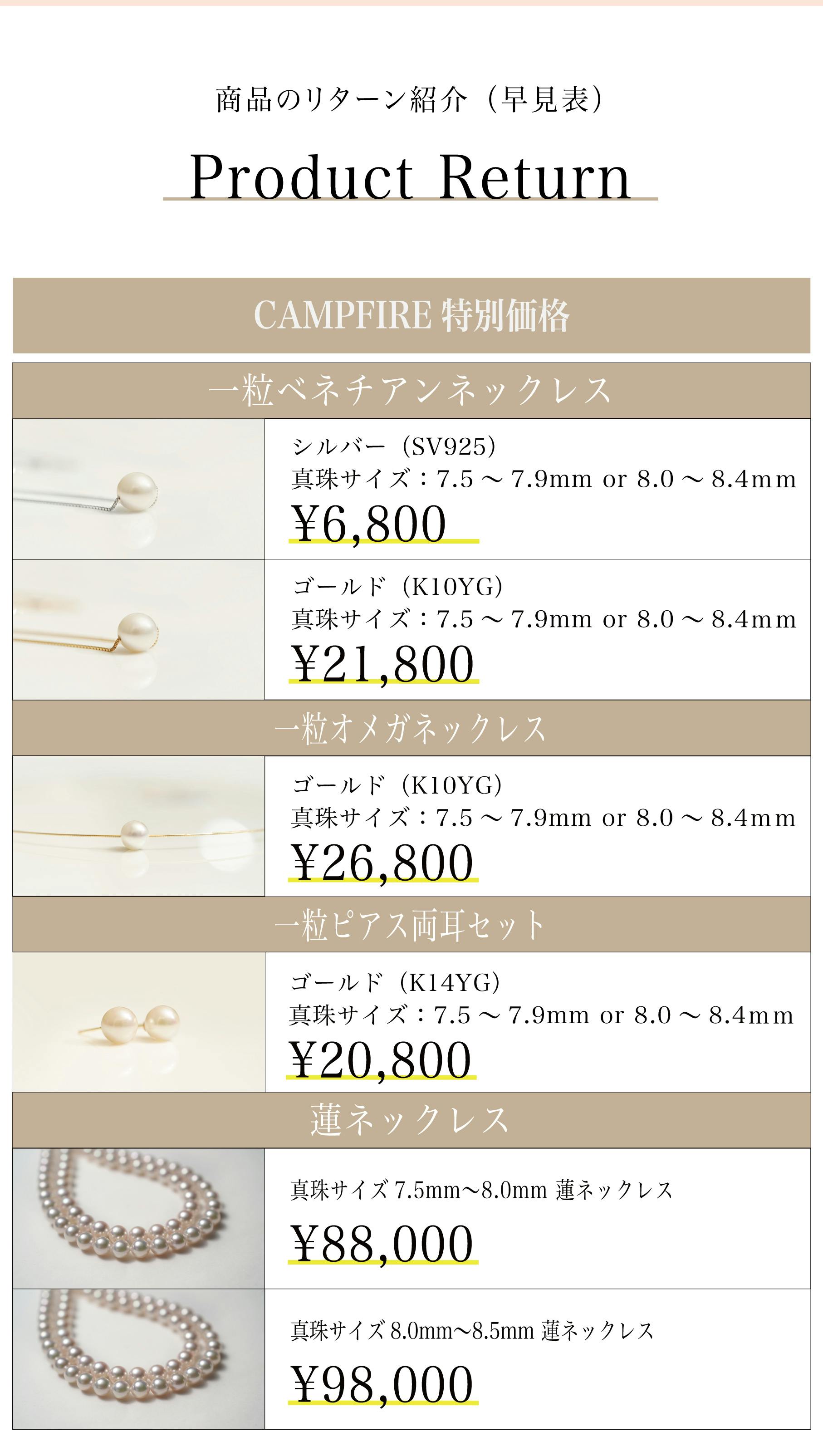 私たちは、できるかぎり販売価格を変えず皆さまに良質な真珠を提供したいと思っておりますが、品質の高い真珠は、値段もさることながら流通量も少ないため、色々な仕入れルートから良いタイミングで仕入れても、適正価格で手に入れることができる数は限られきてしまいます。