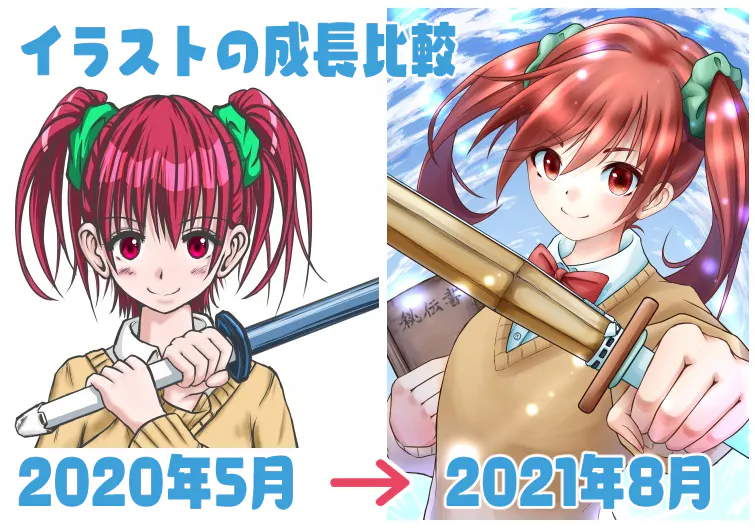 未来のイラストを今購入してもらうというプロジェクトです。上のイラストは1年3ヵ月の画力差を比較したものになります。このまま進めばさらに画力は上がるはずです……が、その分料金も上げる事になるので、今権利だけでも買う事によって「安価」で「高品質」のイラストを手にする事ができるというのがメリットです。