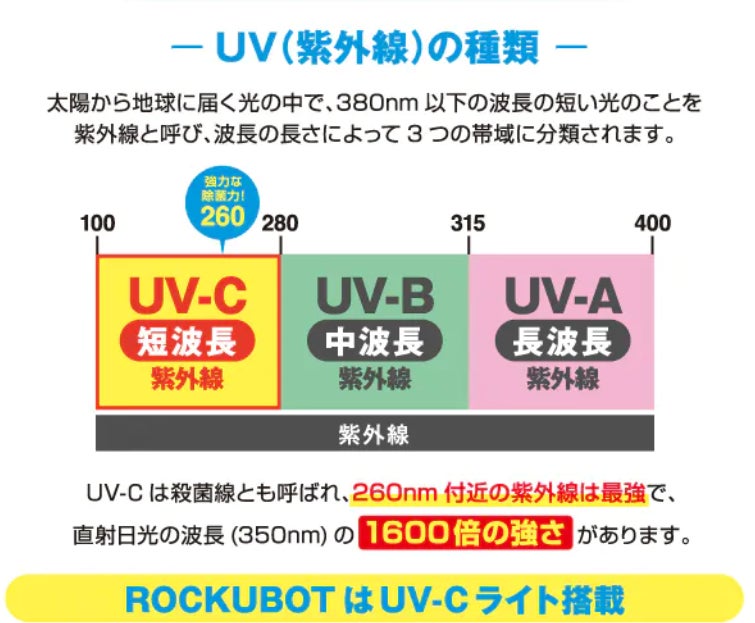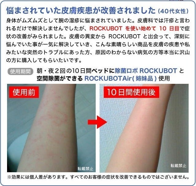 もちろん、全てのお客様のお悩みを解決できるとは思っておりませんが、ROCKUBOTは太陽の1600倍の強力な紫外線(UVC)を使って、ベッドやお部屋のウイルス・細菌・ダニ・カビ菌などを除去することができます。そのような原因を取り除くことができれば、解決できるお悩みがあるのではないかなと思っております。