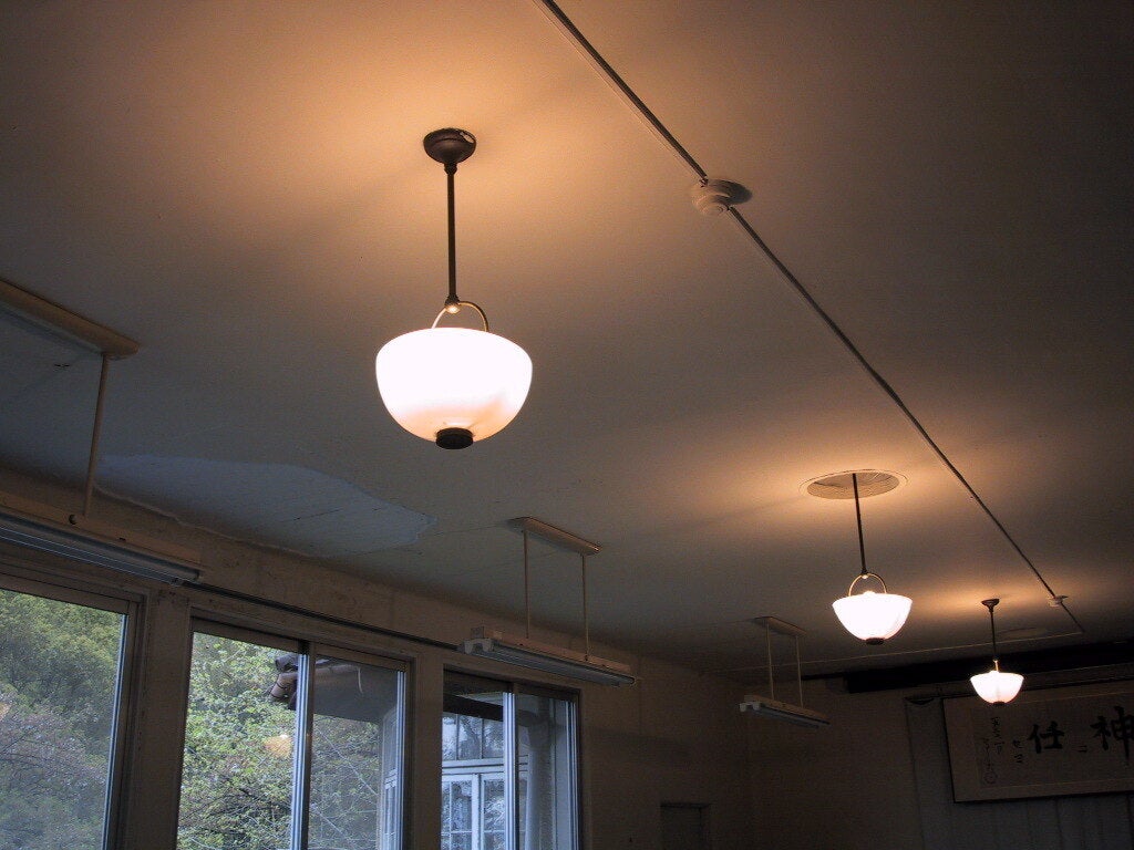 旧近江サナトリューム/ツッカーハウスの病室の照明器具です。デザインからすると輸入物でしょうか? この頃の照明器具はまだ蛍光灯が出てなく、照度は低かった事でしょう。