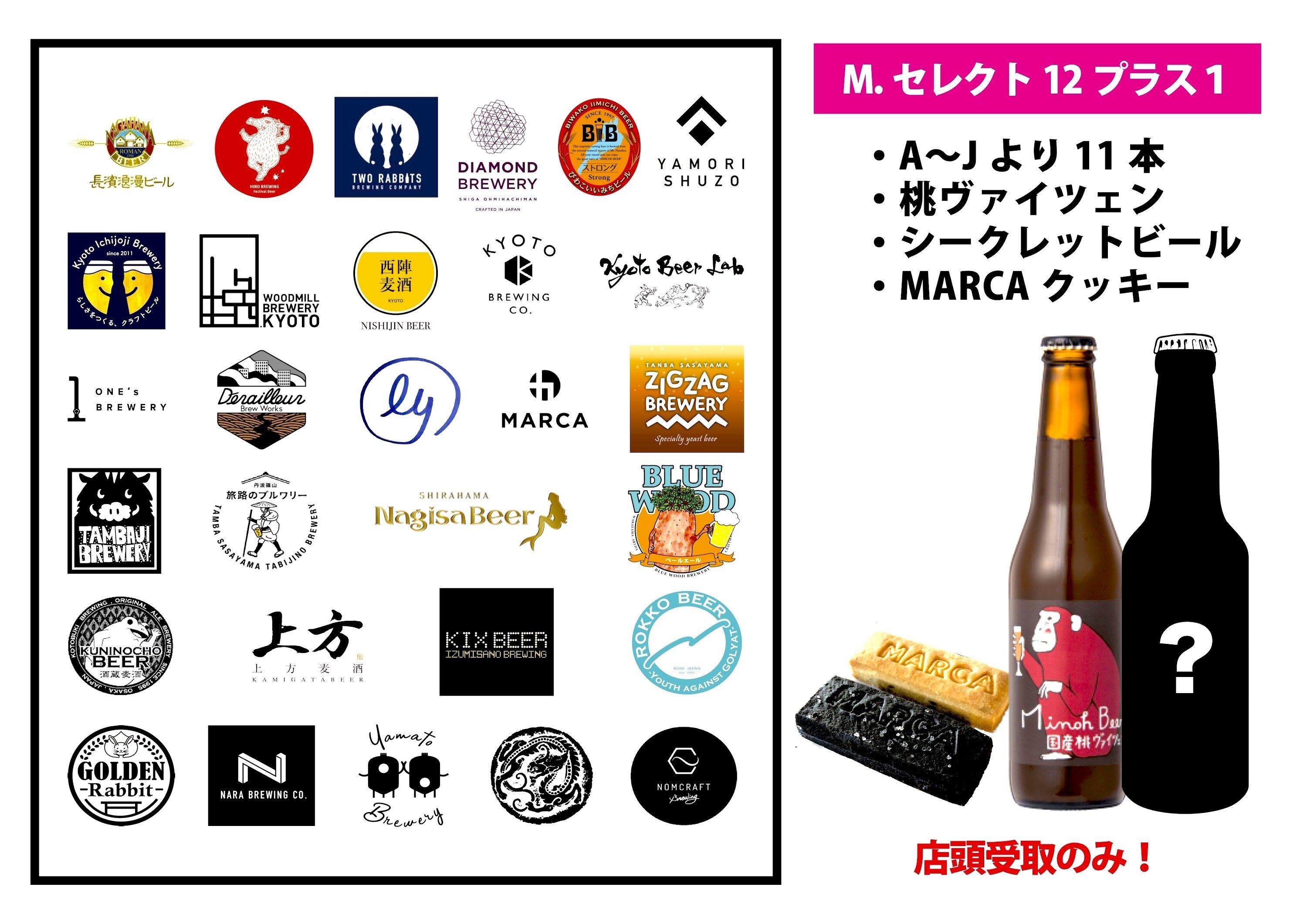 ※好評につきリターン2種追加しました!L スタッフセレクト12本、M スタッフセレクト12本プラス1本付(店頭受取のみ)。どちらのセットも箕面ビールさんで人気の「桃ヴァイツェン」とMARCAさんのおつまみクッキーが入ります!!