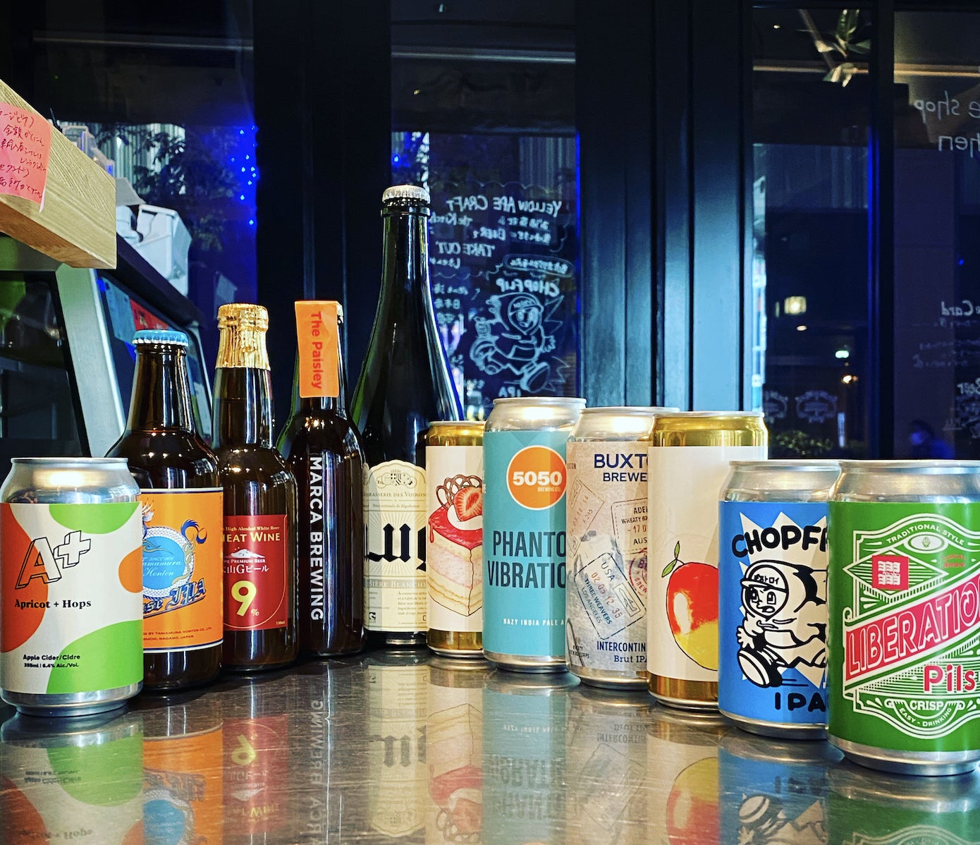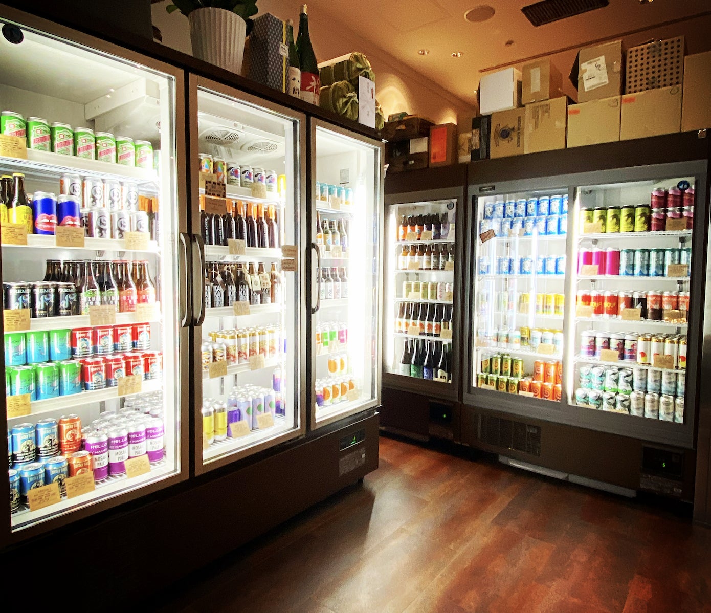 ※併設のボトルショップには関西でも取り扱いが珍しいビールを多数取り揃えており、持ち帰りにも店内利用にも対応できます。