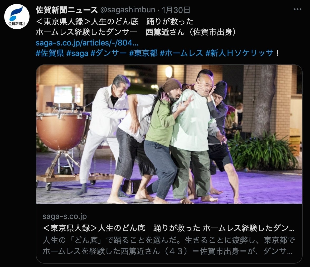 2022年1月30日の佐賀新聞に、新人Hソケリッサ!メンバー 西篤近の記事が掲載されました!これまでの道のりとダンスとの関わりが語られています。https://www.saga-s.co.jp/articles/-/804045また、現在販売中の『ビッグイシュー』423号にもソケリッサ!情報が載っています。ザ・ビートルズの表紙が目印です。メンバーも各地で販売員として活躍中です。▶︎『ビックイシュー』販売場所一覧 https://www.bigissue.jp/buy/最新号はもちろん、バックナンバーも販売者より購入可能です。また、路上での購入が難しい方向けの通信販売もあります。(ちなみに411・412・415号の「ホームレス人生相談」コーナーにもメンバーが登場しています!)よろしければぜひお手に取ってみてください。