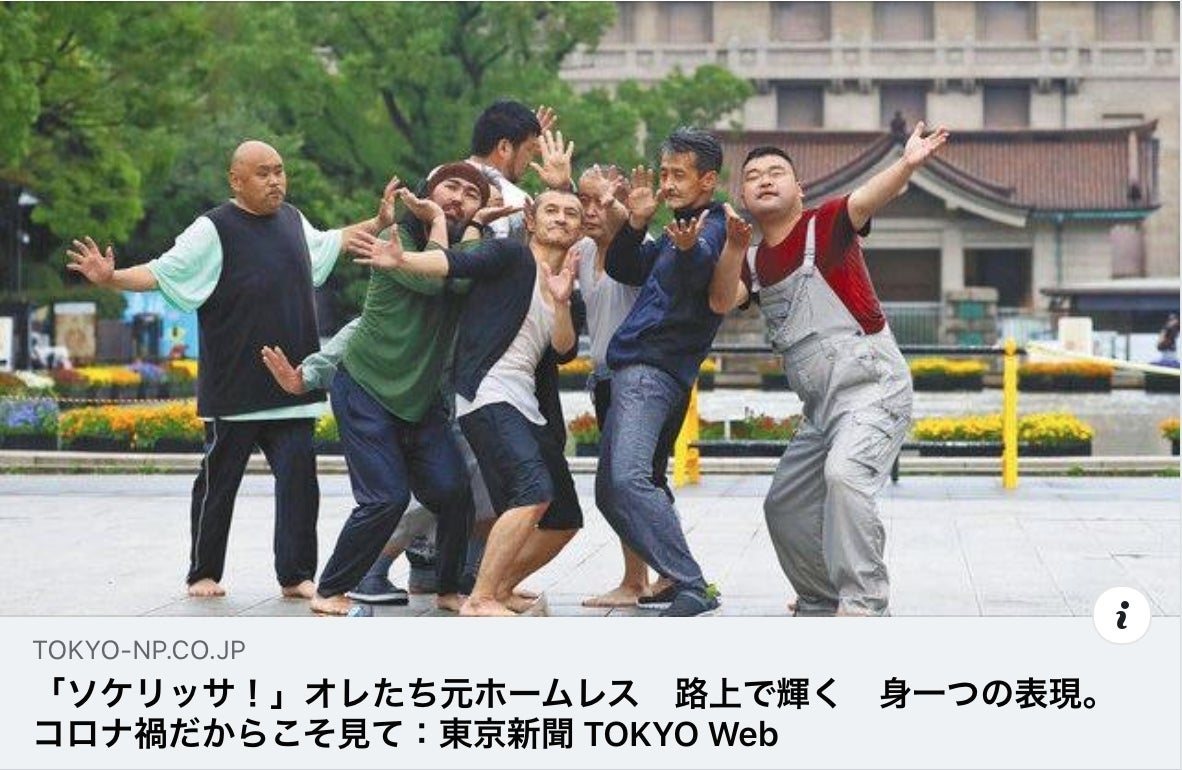 感染状況の急激な悪化を受けてしばらく休止しておりましたが、いよいよ今月末より再開いたします!第3回は東京・上野恩賜公園にて、東京国立博物館と大噴水をバックに行います。今回はダンスパフォーマンスに加え、新人Hソケリッサ!主演のドキュメンタリー映画『ダンシングホームレス』の屋外上映も予定しています。どうぞお気軽にお越しください!2021-2022「路上の身体祭典H!」新人Hソケリッサ!横浜/東京路上ダンスツアー#3上野恩賜公園 パフォーマンス&映画上映日 程 2022年4月26日(火)会 場 上野恩賜公園 竹の台広場(噴水広場)入場料 予約不要・無料(投げ銭制)タイムテーブル16:30 開場16:45〜17:30 ①ダンスパフォーマンス『ヒニヒリズム/今度会ったらロクでもない奴らと仲良くなりてえ・・』17:45〜18:15 ②トーク18:30〜20:10 ③映画上映『ダンシングホームレス』※ 入退場自由。雨天の場合は、ダンスパフォーマンスのみの開催。※ ビッグイシューの出張販売あり。お問い合わせアオキカク aokikaku2021@gmail.com