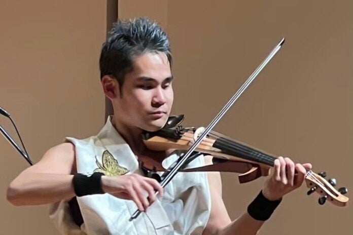 ポップバイオリンの式町水晶(24)が生演奏を届けました。
