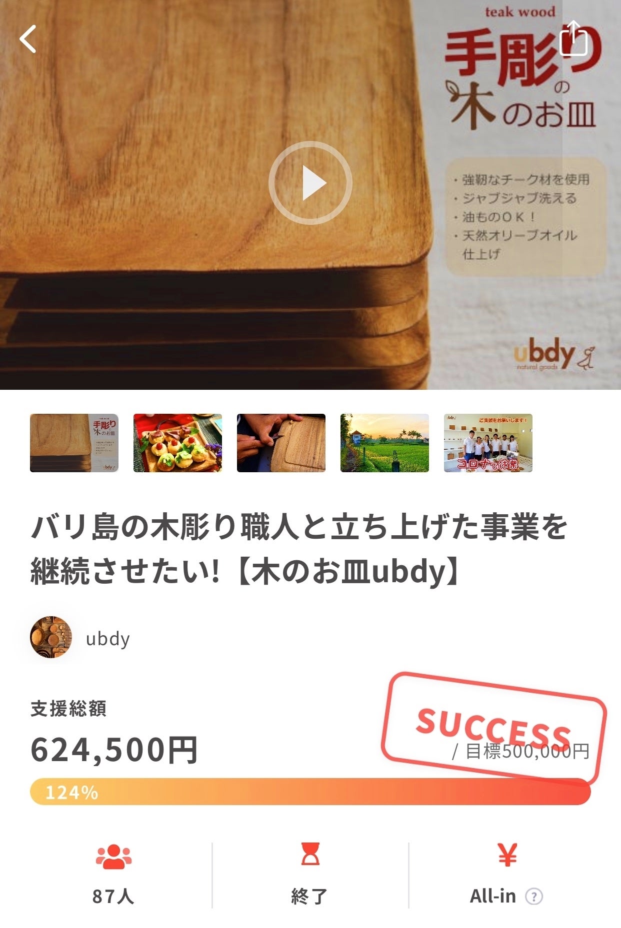 ウブド店の売上はウブドの人々の生活に直結しているため、日本国内でなんとかしようと私たちは昨年11月にここCAMPFIREさんではじめてのプロジェクト「バリ島の木彫り職人と立ち上げた事業を継続させたい!」を立ち上げました。その節は目標を上回るご支援をいただき、心より感謝申し上げます。