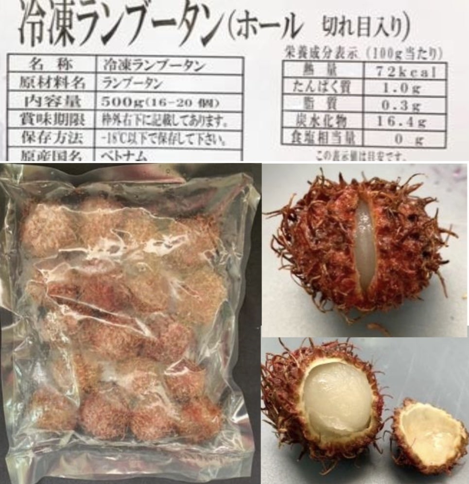 厳選されたベトナム産のランブータンを新鮮なまま急速冷凍しています。柔らかな毛に覆わ れたエキゾチックな外観が特徴的なランブータンは東南アジアを代表するトロピカルフルーツです。
