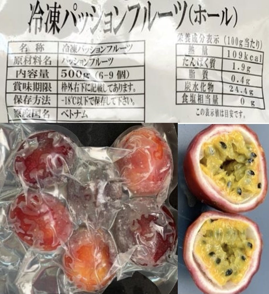 パッションフルーツ:半解凍後、ナイフで半分に切りスプーンでお召し上がりください。