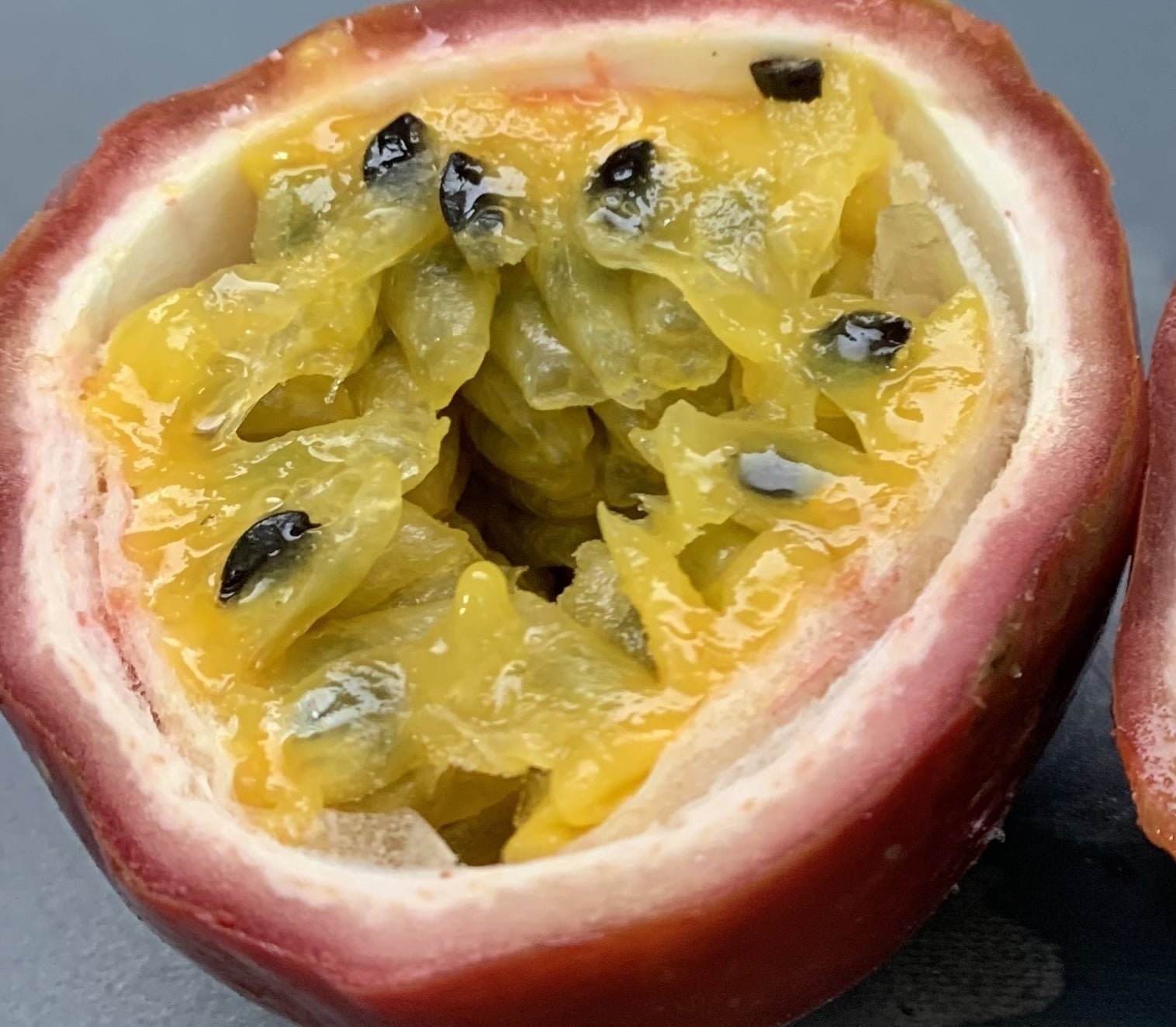 甘酸っぱい触感と種の触感が特徴的なパッションフルーツは、βカロチン、ビタミンB6、葉酸などが含まれるスーパーフルーツ!