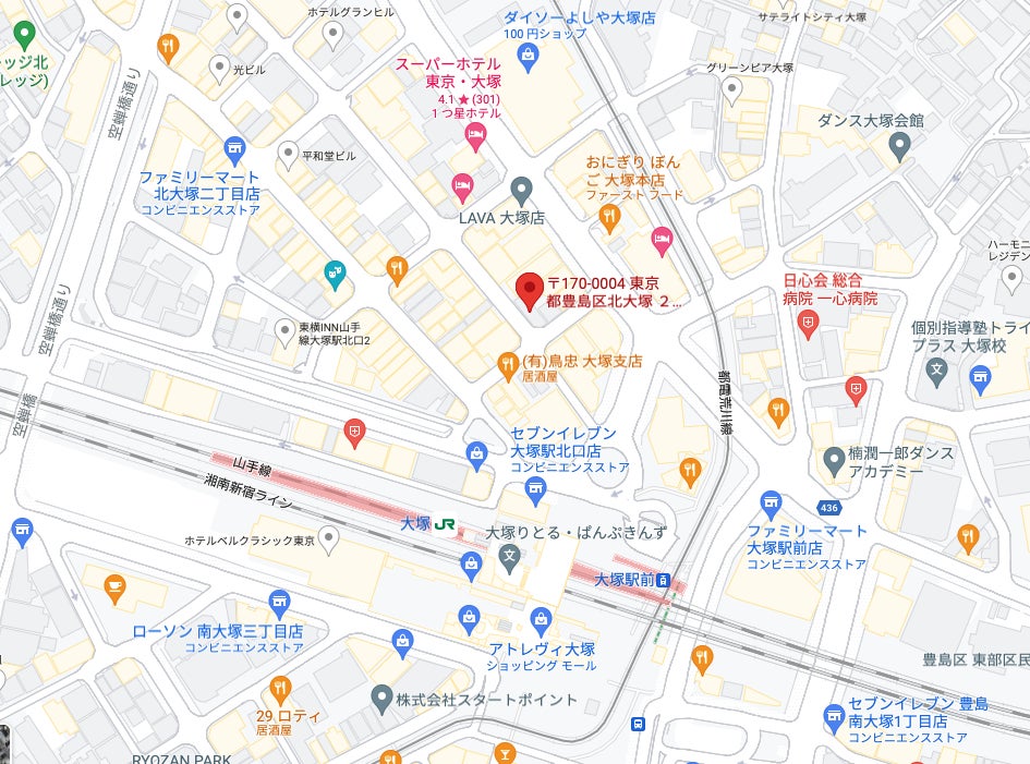 ●住所:170-0004 東京都豊島区北大塚2-16-12 第二長坂ビル1-2階