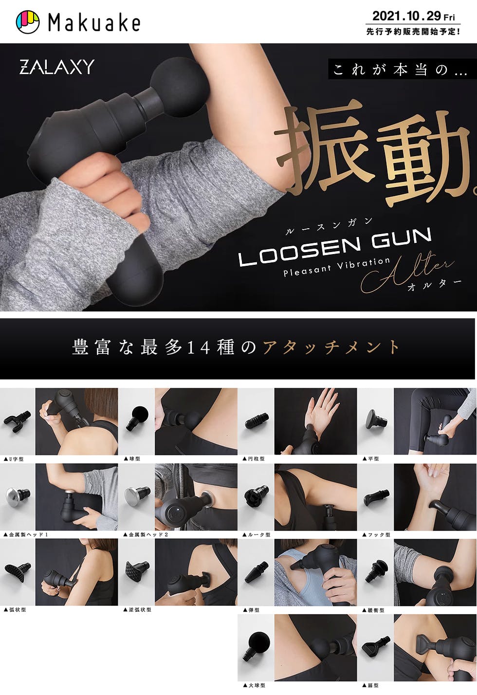 2021/10/29 10:00ご覧いただきありがとうございます新プロジェクト公開します!多彩なアタッチメントはなんと14種類!これが本当の振動。【ZALAXY LOOSEN GUN オルター】珍しい”進化型”だからこそ実現できる全身セルフケア!【LOOSEN GUN -Alter-】の特徴<4段階のパワー調節機能>その日の身体の状態や気分に合わせて、4段階のパワー調節が可能!さらに、押し当てる強さで振動をコントロールすることができます。<14種類の豊富なアタッチメント>各部位に合わせたアタッチメントでお手軽に全身ケアが可能!抜く・押し込むだけで取り換えができるので誰でも簡単に扱えます。<安全性・機能性>やりすぎは"揉み返し"の心配に。。。そこで10分タイマー機能を搭載!10分経つと自動で電源がオフになります。コンパクトなサイズでご自宅ではもちろんジムなどでも手軽にご使用いただけます。【最大20%OFF】でお得に購入いただけるチャンス!10月29日午前10:05分公開予定気になる方は[詳しくはこちら]から詳細を確認ください。商品仕様サイズ:165×170×65(mm)重さ:約420gカラー:レッド・ピンク・ブルー・ブラック充電時間:2時間(フル充電) もっと見る