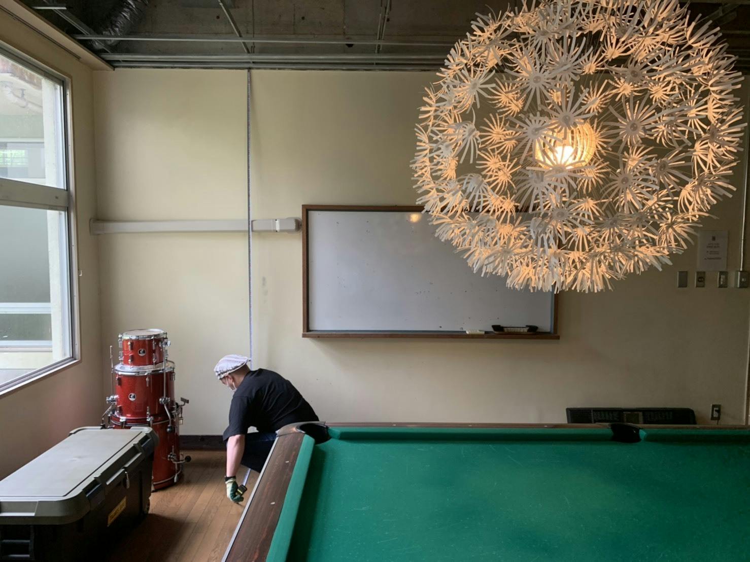 サラダシリーズ展示用にベニヤ板を全面に貼り付けます。
