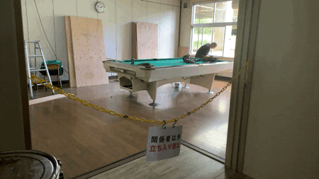 本日は会場の壁にベニヤ板を貼り付けています。