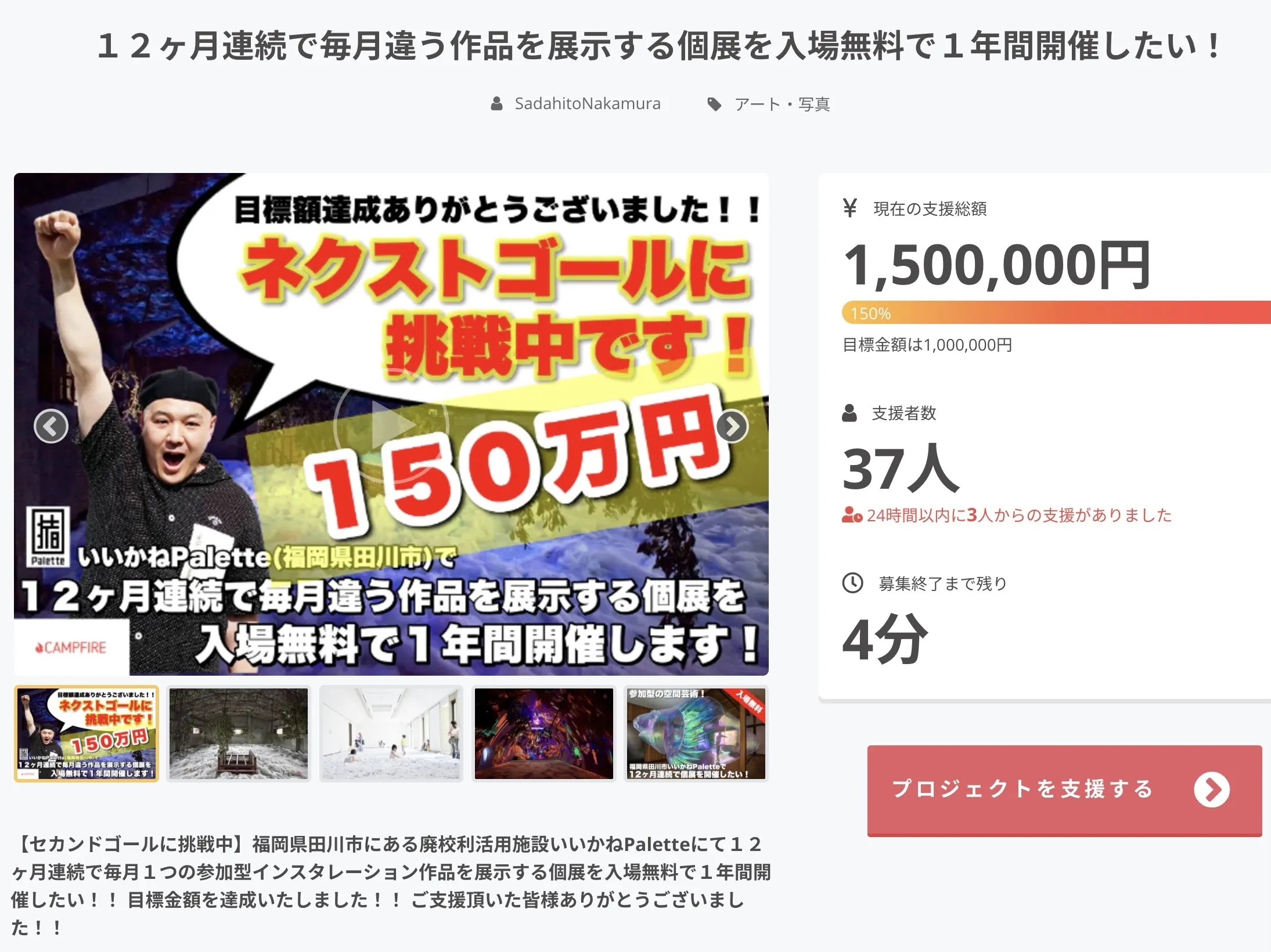 どこまでいけるかわかりませんでしたが、なんとか目標金額の150万円を達成することができました。
