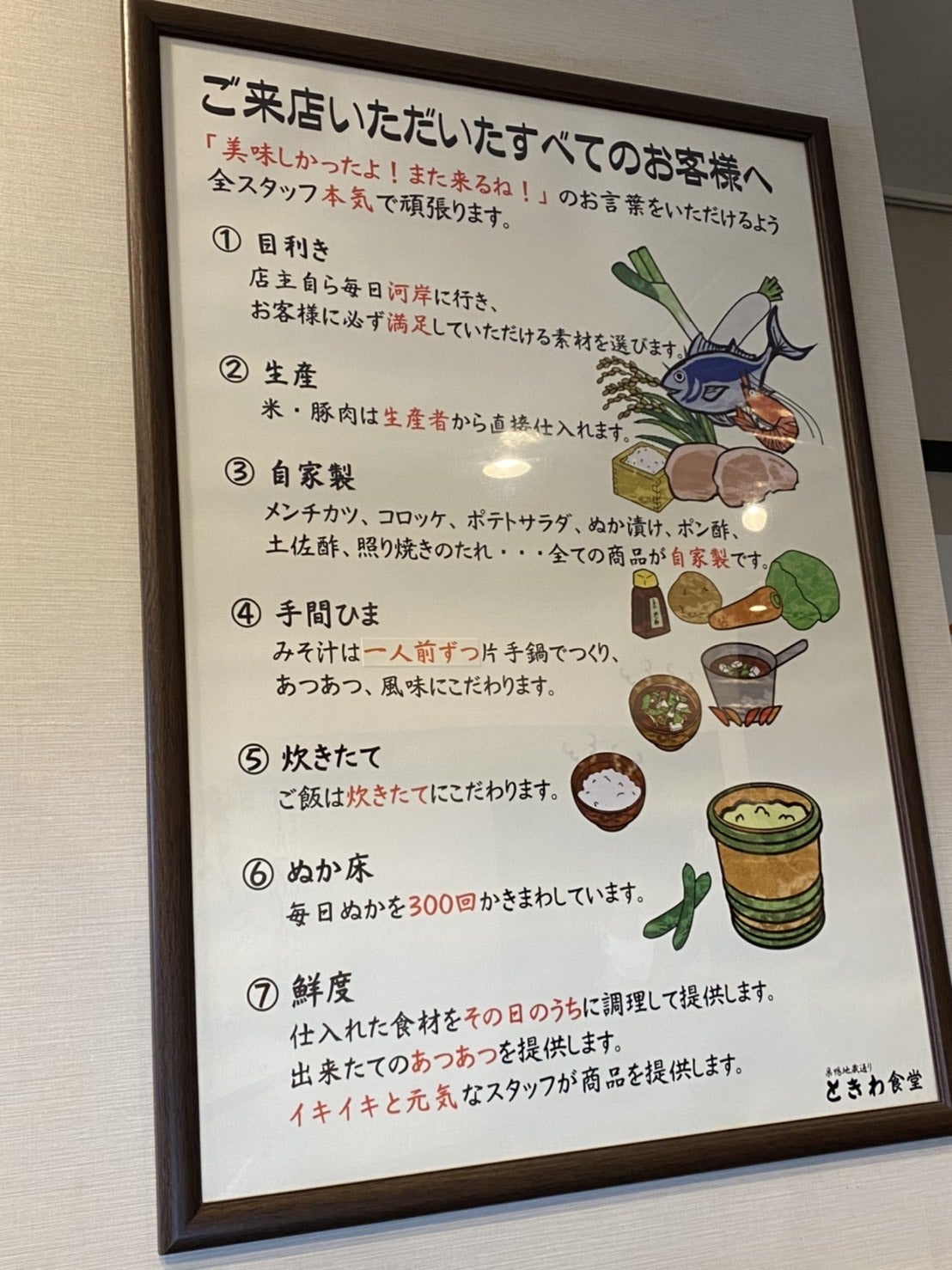 ご来店していただいた全てのお客様に「美味しかったよ!また来るね!!」のお言葉をいただけるよう、食堂で出せる美味しさを追求してきました。全ては「迷ったら美味しい方」を選ぶ。