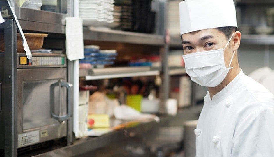 現在、お店では店頭でのアルコール消毒、換気、アクリル板の設置、ホールスタッフ一人一人がマスクとフェイスシールドの着用など、感染防止対策を徹底して営業しております。