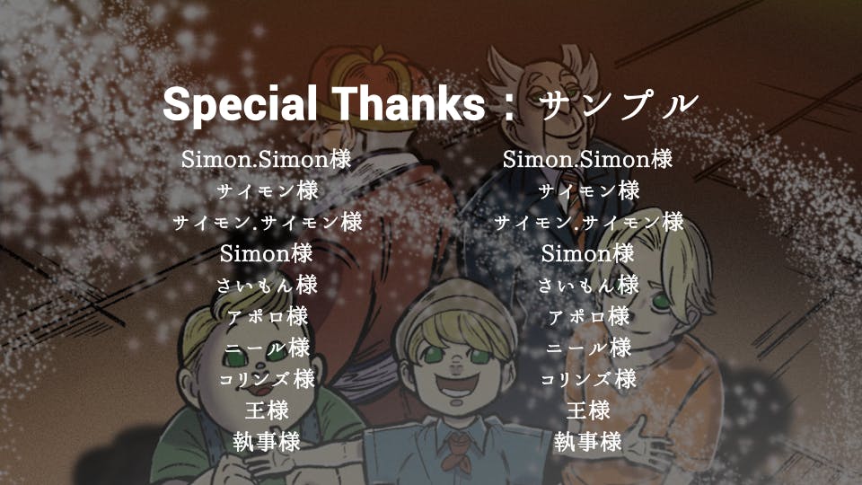 ご記入いただきましたお名前をスペシャルサンクスとして出します。