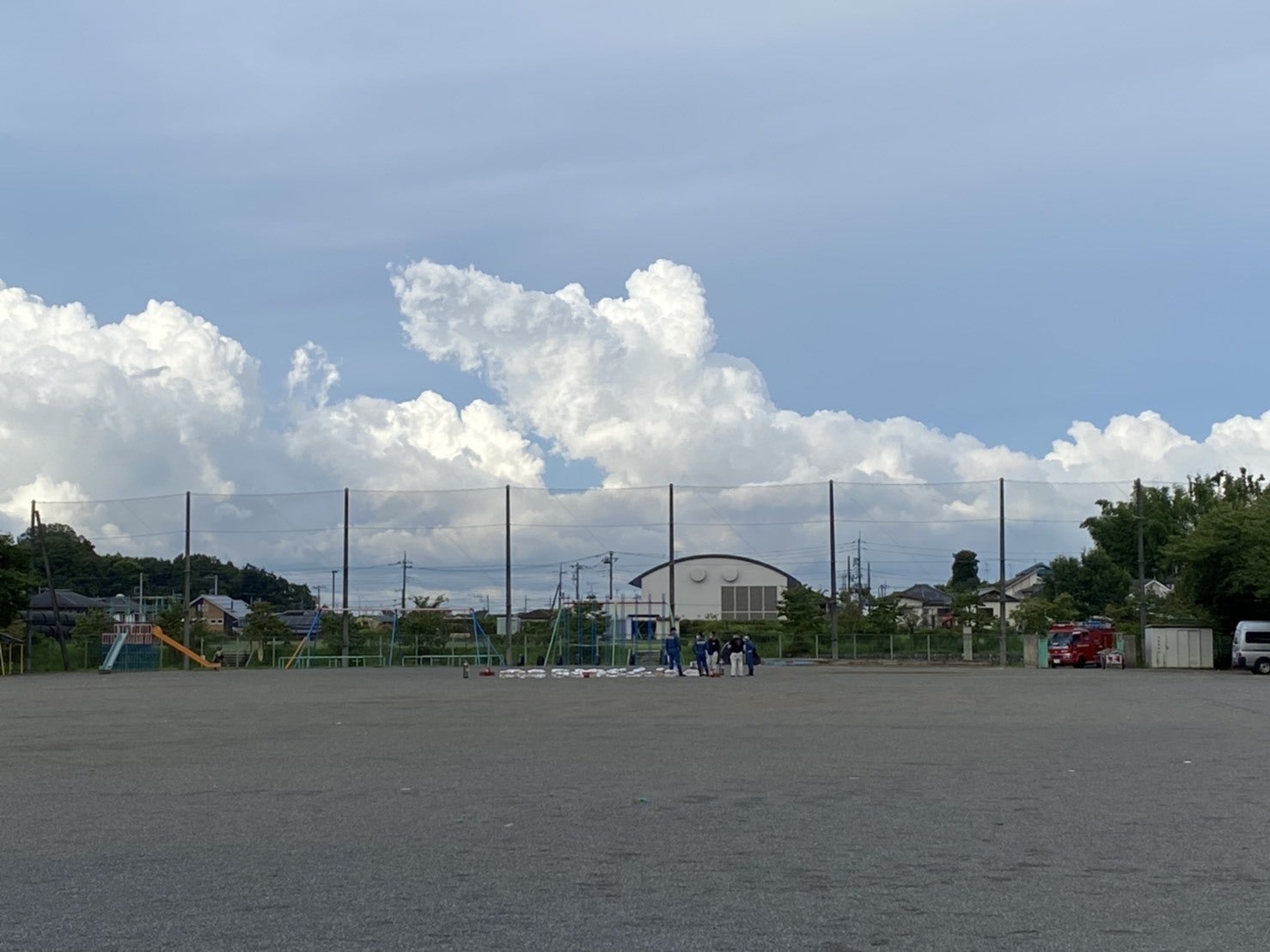5時には地元の消防団や消防署も来てくれて、ふと見上げるときれいな青空。