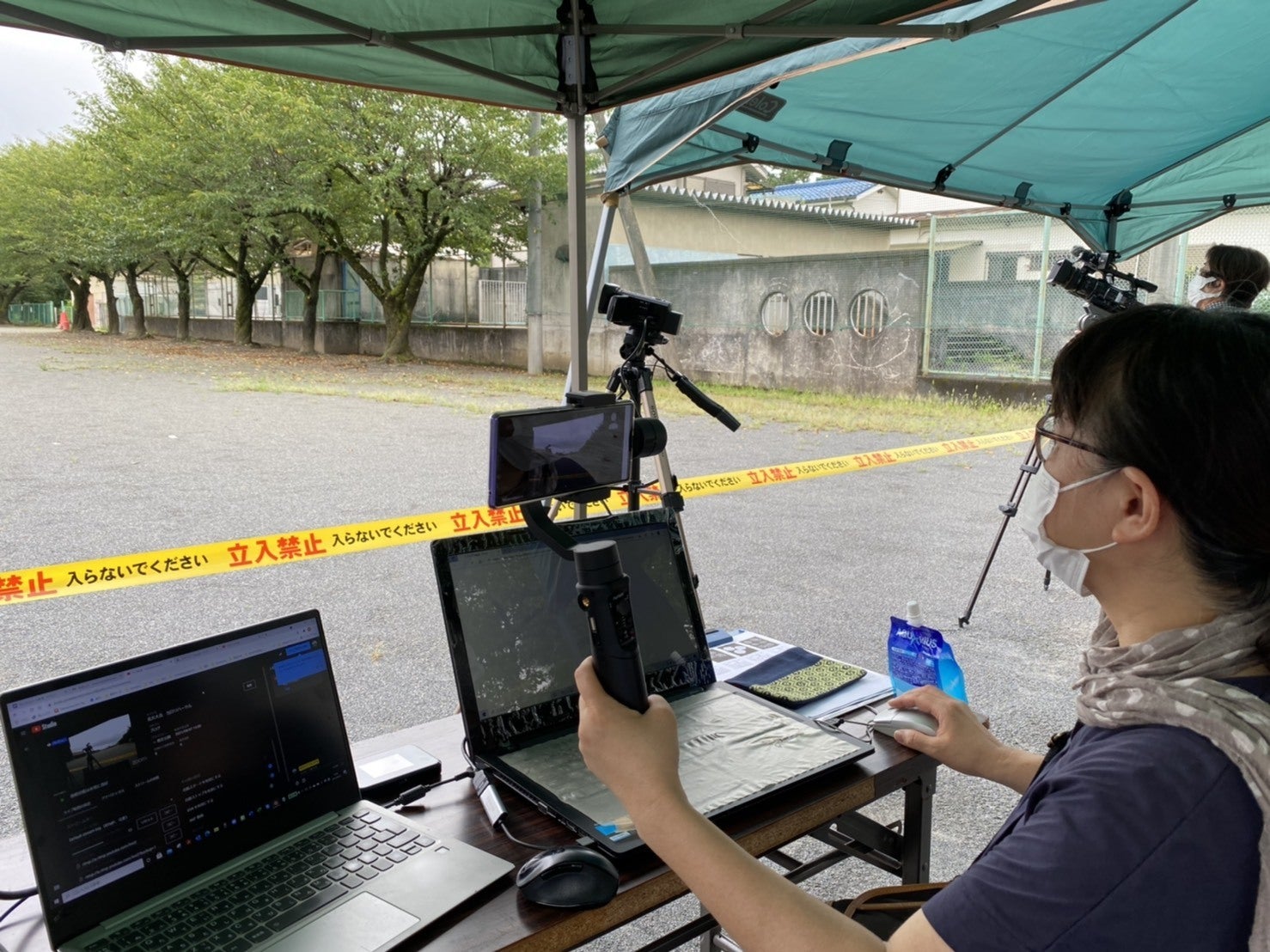 学校や周辺の公園は一般の方には立ち入り禁止となりましたが、立ち入り禁止区域の外で撮影・配信ブースを設置。ケーブルテレビさんや新聞社さんも取材に来てくださいました。