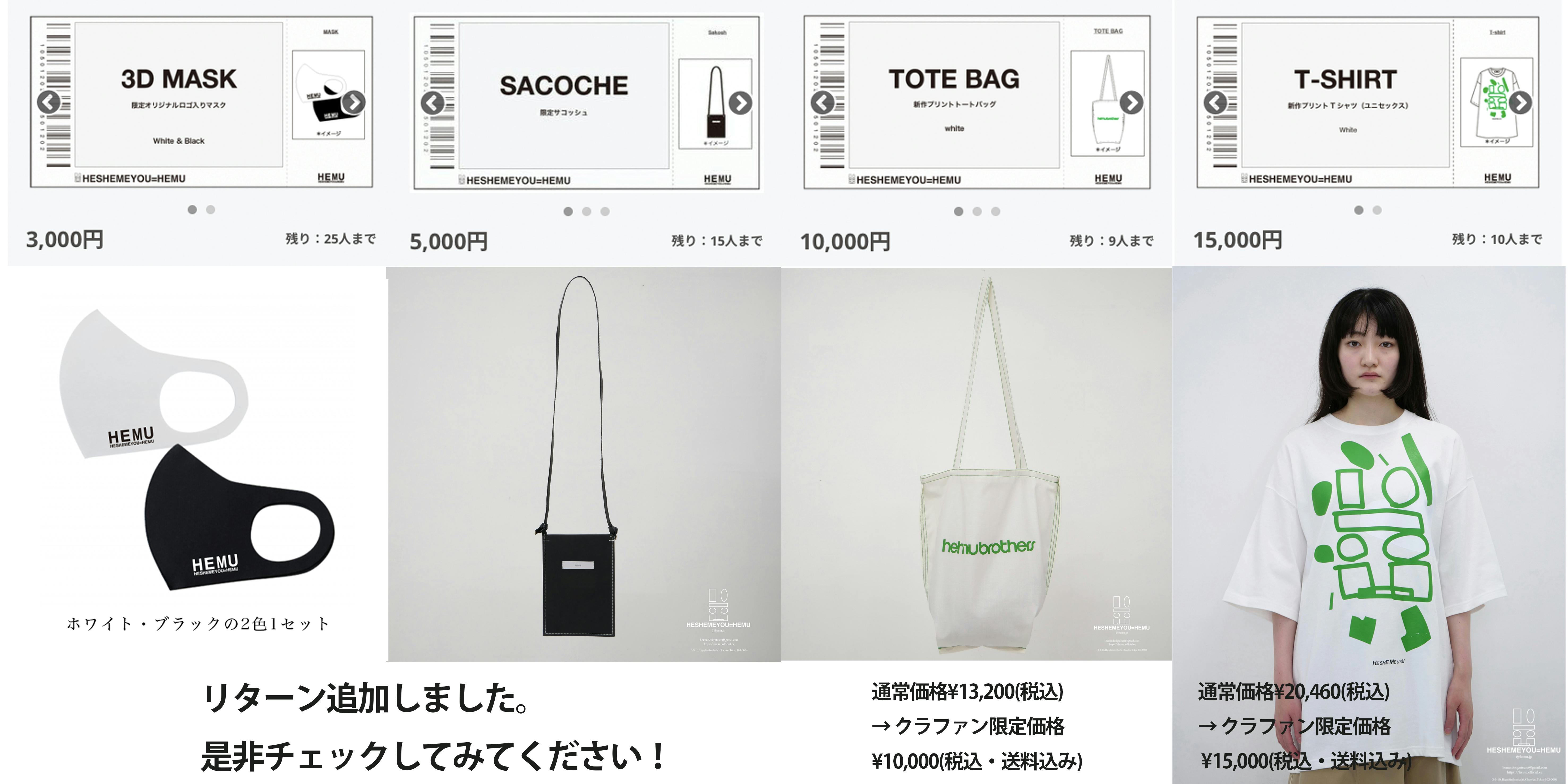 リターンを追加しました!online shopで受注販売している新作アイテムが、キャンプファイヤー限定価格でお安くリターンとしてお返しできるので、是非チェックしてみてください!