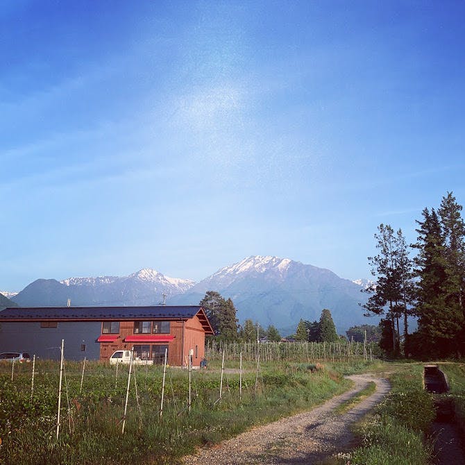 北アルプス山麓、長野県大町にて2008年よりぶどう栽培を始め、2015年ワイナリーを設立。 小さな農家が始めたワイナリーです。標高は760~790メートル。年間降水量は1200~1400ミリメートル。あたり一帯は複合扇状地で、地元では「ガラ」と呼ばれる水はけのよいところ。果樹栽培に適しており、周辺にはリンゴ農園も多くあります。自社畑は約2ヘクタール。シャルドネ、メルロー、ピノ・ノアール、ピノグリ、カベルネフランを植えました。