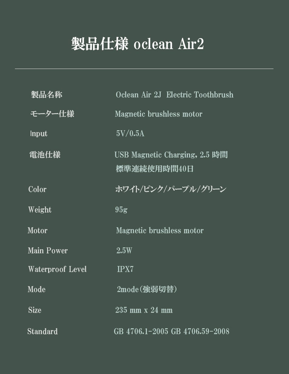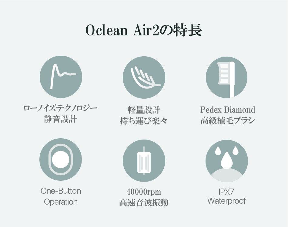 Air2は【 圧倒的な静音性・確かなクリーニング能力・ポータブル性・美しさ 】にこだわったocleanの最新電動歯ブラシです。