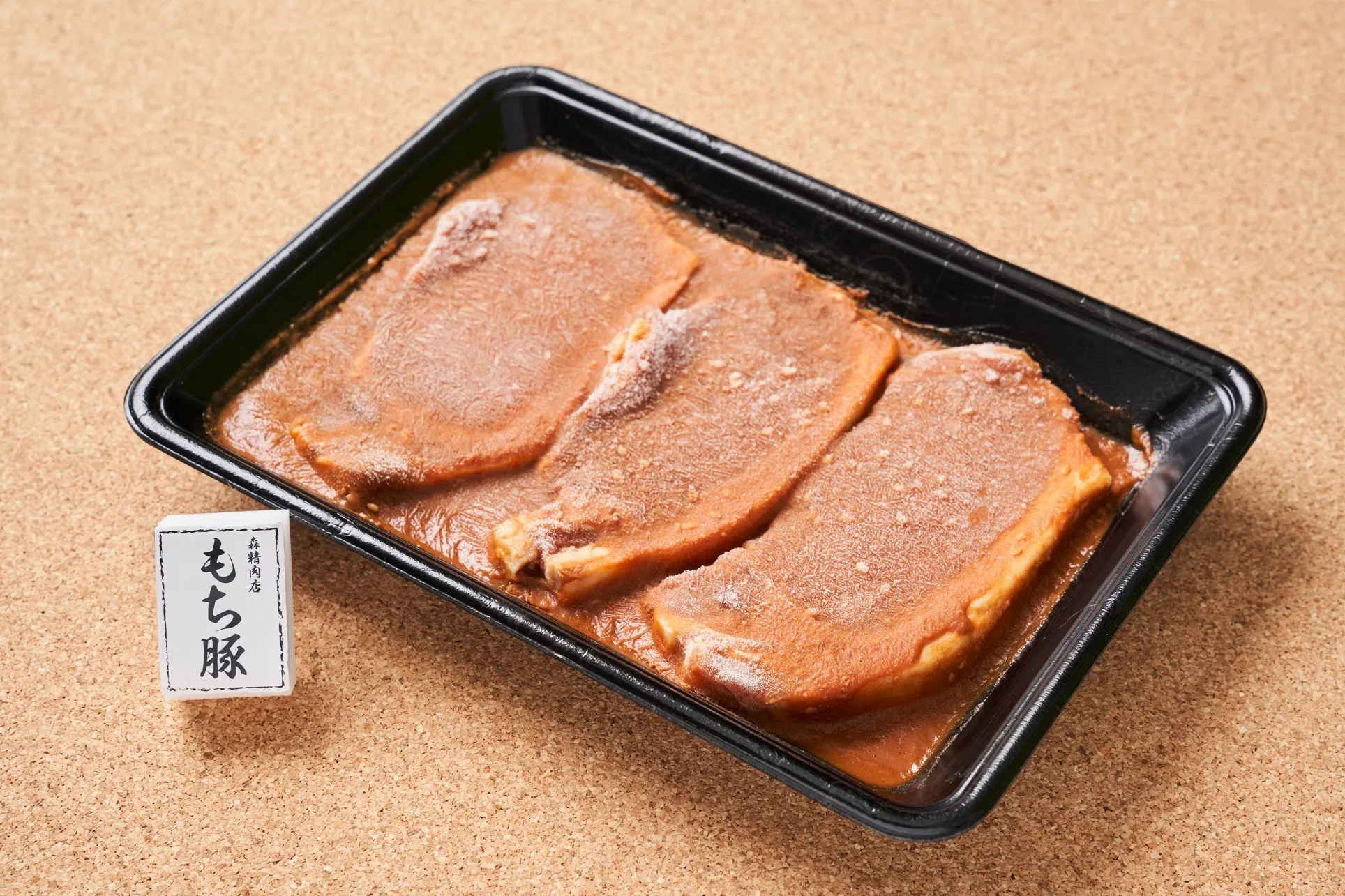 しっとりもっちりとした赤身に甘みのある脂身の国産もち豚を使用し