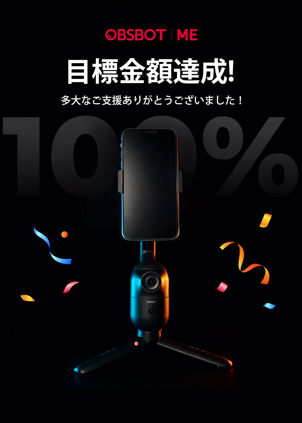 OBSBOT Meのプロジェクトは開始から約47分で目標金額を達成することができました。ご支援頂きましたの皆様に心より感謝申し上げます。