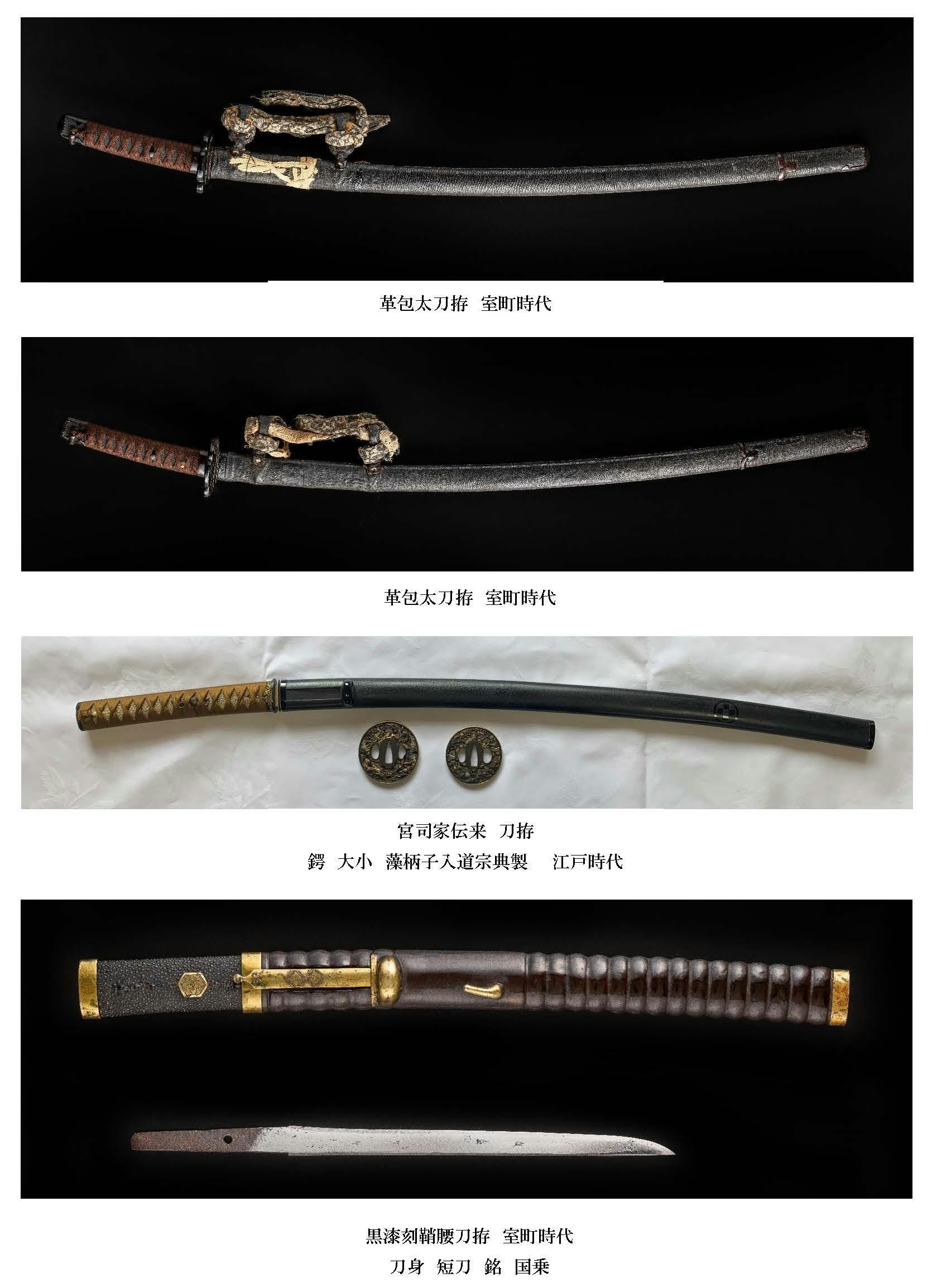 兵主大社には、今回復元する太刀の他に十数本の刀剣が御神宝として残されております。この度御鎮座1300年を迎えるにあたり、記念事業の一環として現存している刀剣をはじめ、拵(こしらえ)等をすべて修復させていただき御神前に奉告させていただきました。