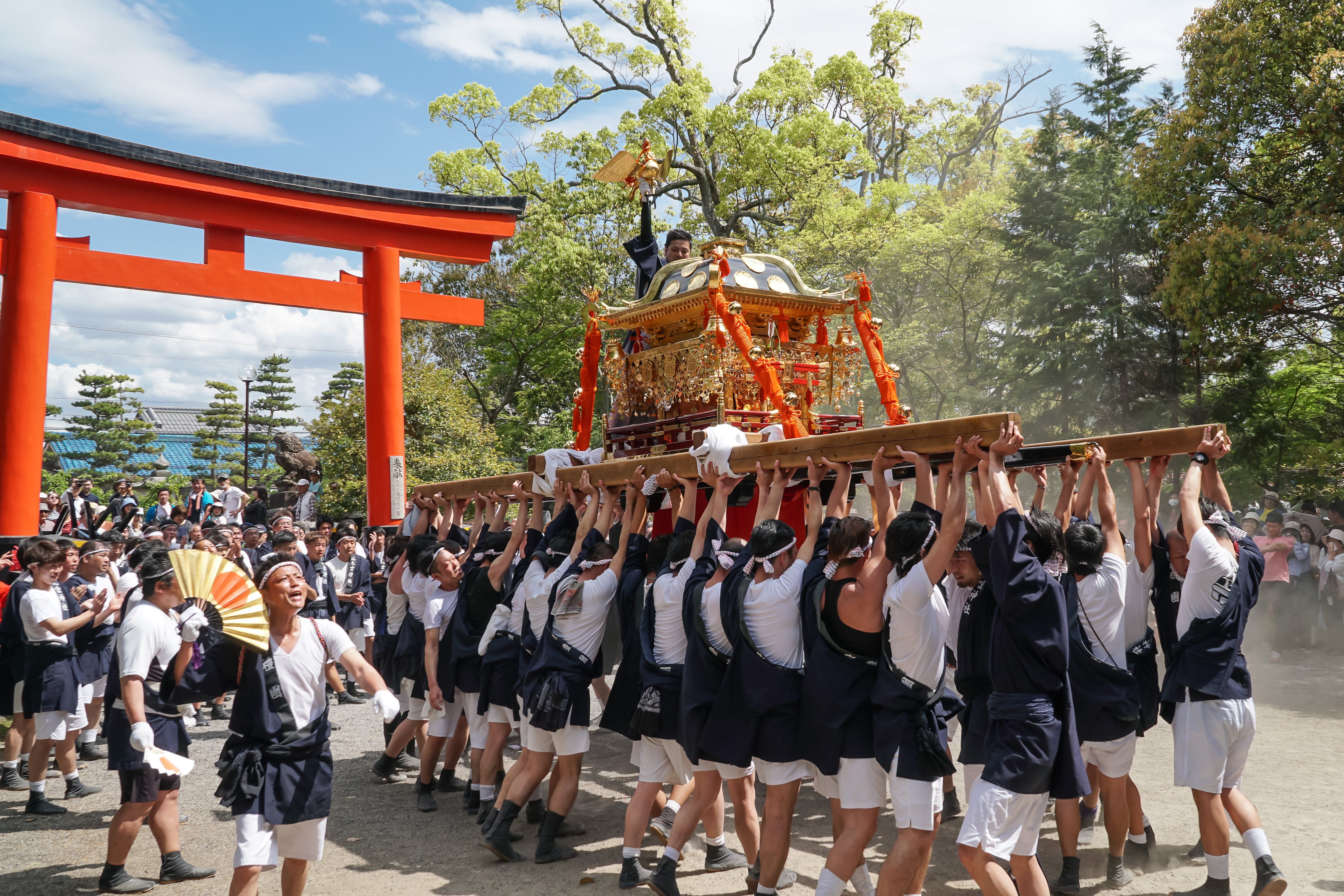 毎年5月5日には兵主郷と呼ばれる18の集落より約40の神輿、太鼓が神社に集い兵主大社例大祭(兵主祭)が盛大に執り行われます。