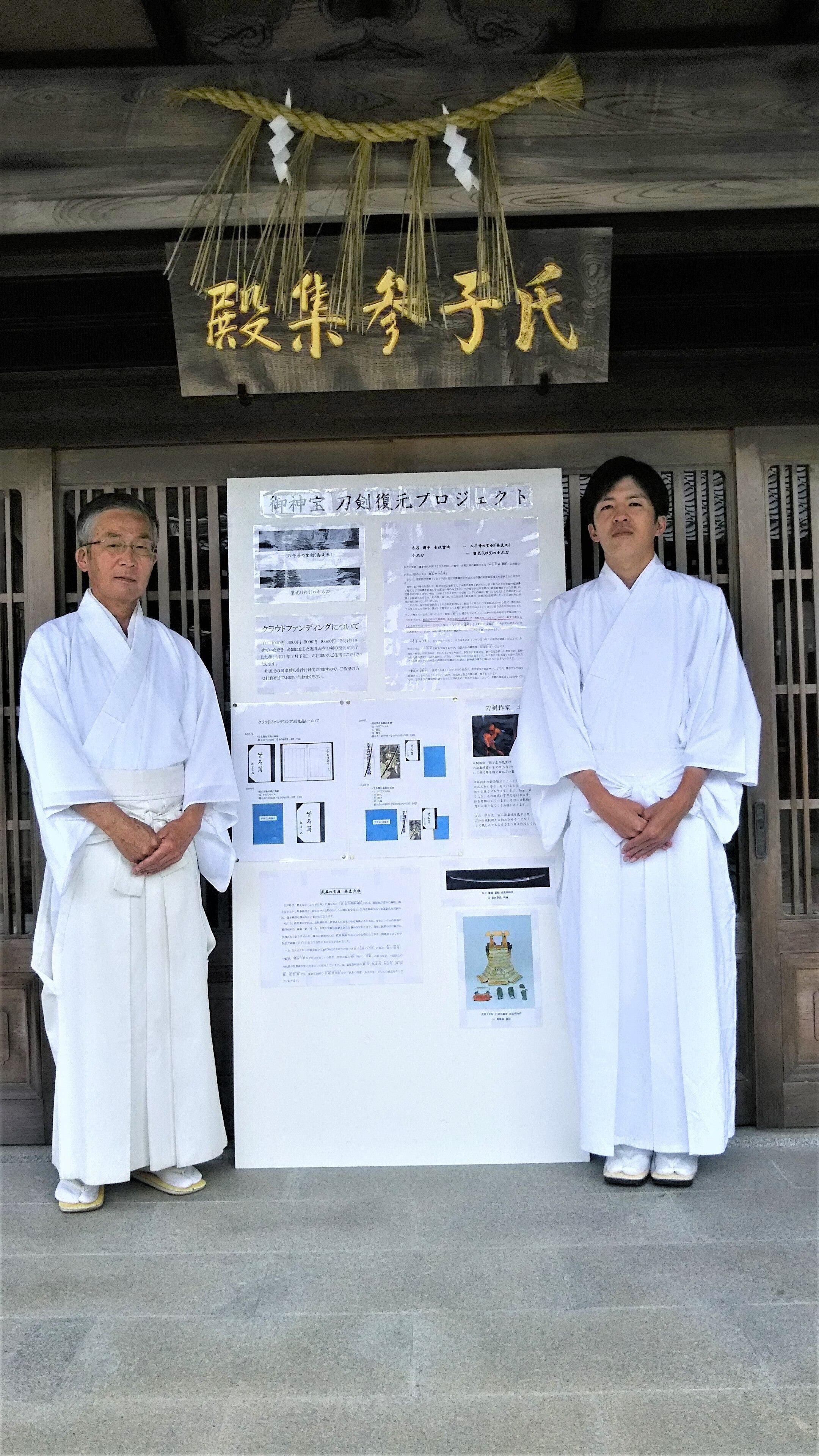 その他にも多くの場所で修復した刀剣を披露させていただき、氏子の方々をはじめ多くの皆様に神社と刀剣の関わりを知っていただく機会を設けてまいりました。今回のプロジェクトにおいても刀剣が完成し御神前に奉納させていただいた後に、ご支援いただいた皆様をはじめ多くの方々に披露の場を設けさせていただきたいと考えております。