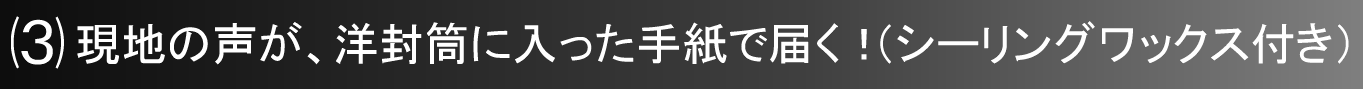 現地の貧困に苦しむ方々からのメッセージが、シーリングワックスによって封がされたオシャレな洋封筒に入って届きます。支援者様の温かい御気持ちに、心より感謝申し上げます。※手紙の言語が日本語で書かれることをご希望の方は購入の際に備考欄でお知らせ下さい。※写真はイメージであり、実際のものとは異なります。