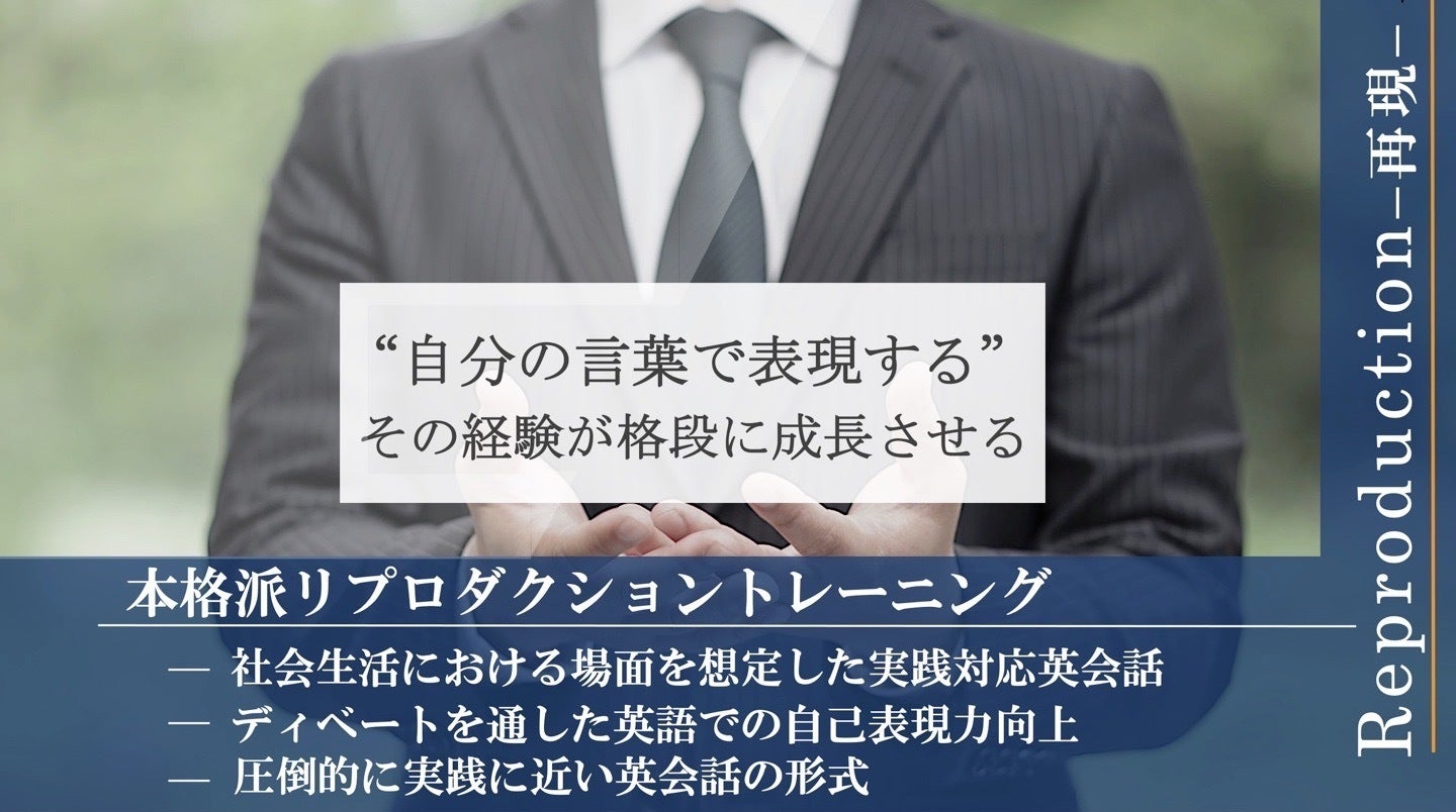 リプロダクションは「再現」という意味を持つ言葉です。英会話におけるリプロダクショントレーニングとはつまり、テキストや音声を暗記し、